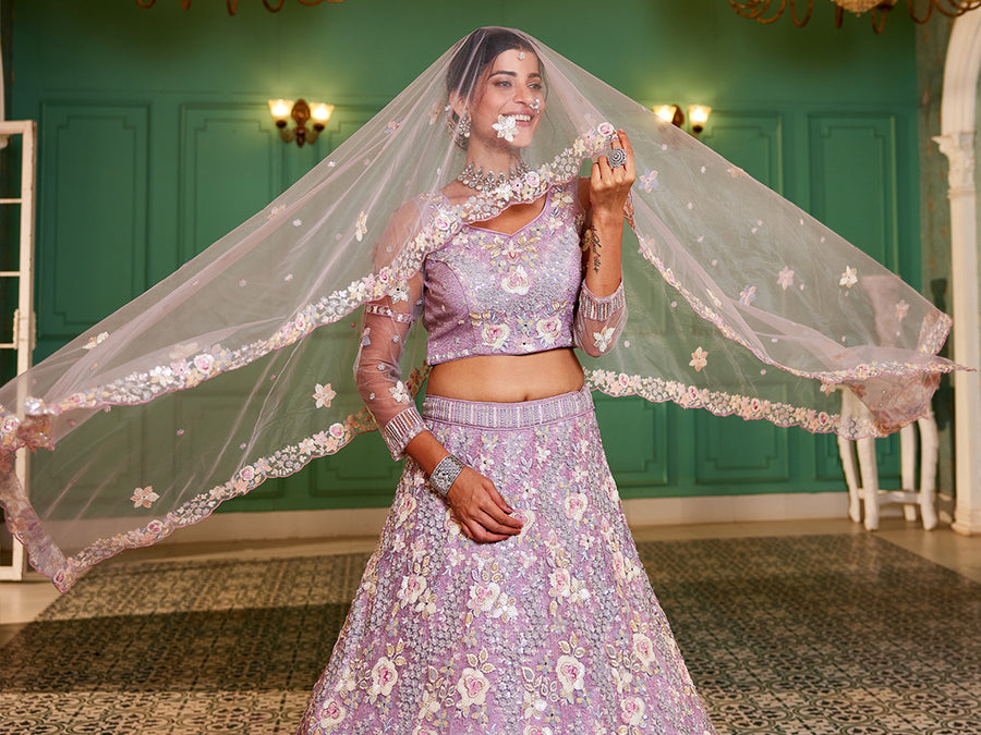 A-line lehengas, Anarkali suits, and flared gowns are flattering on most body types and help enhance your bridal look