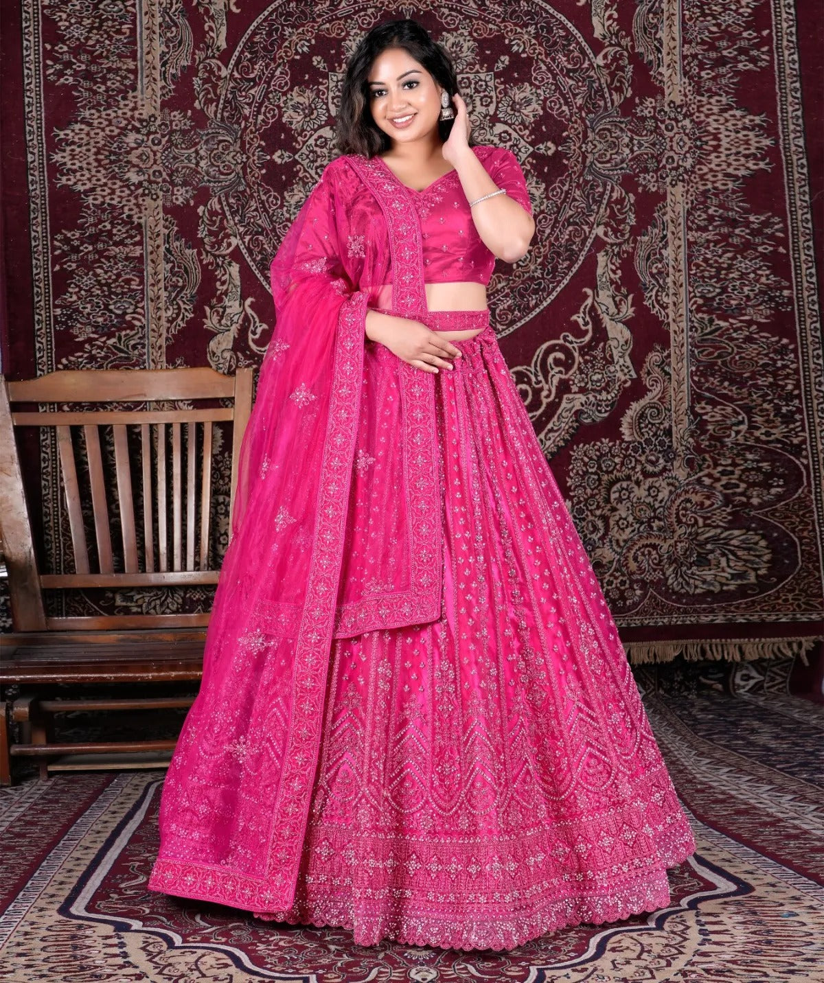 Glamorous Rani pink peacock Double dupatta Silk Bridal Lehenga happy customer