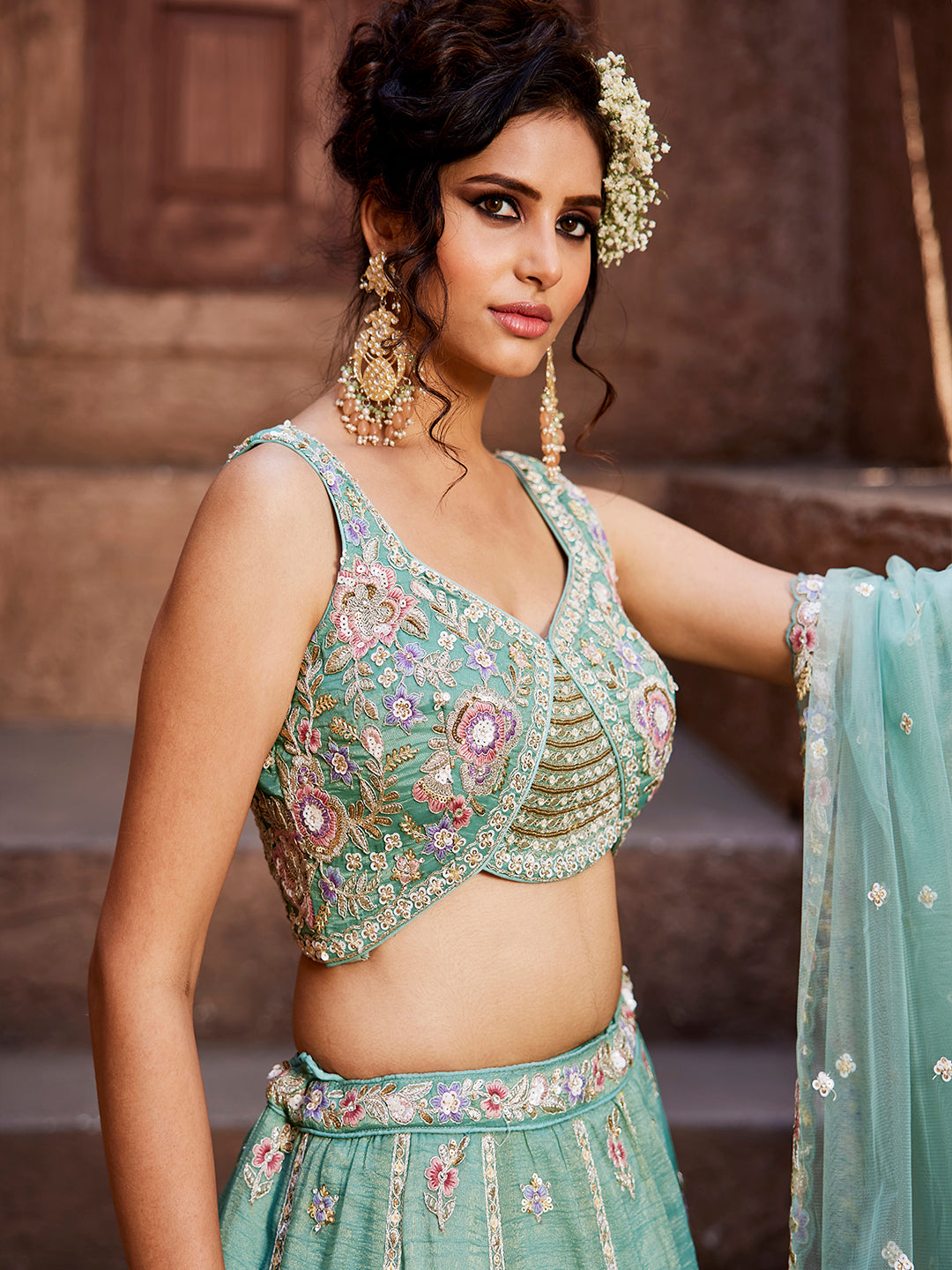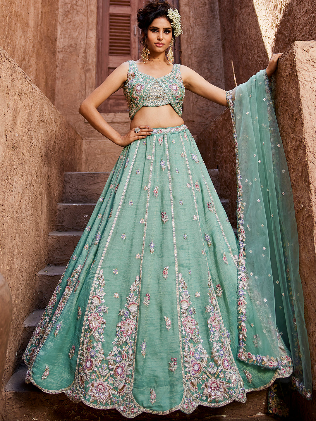 Attractive pista green peacock crop top Lehenga Happy Customer