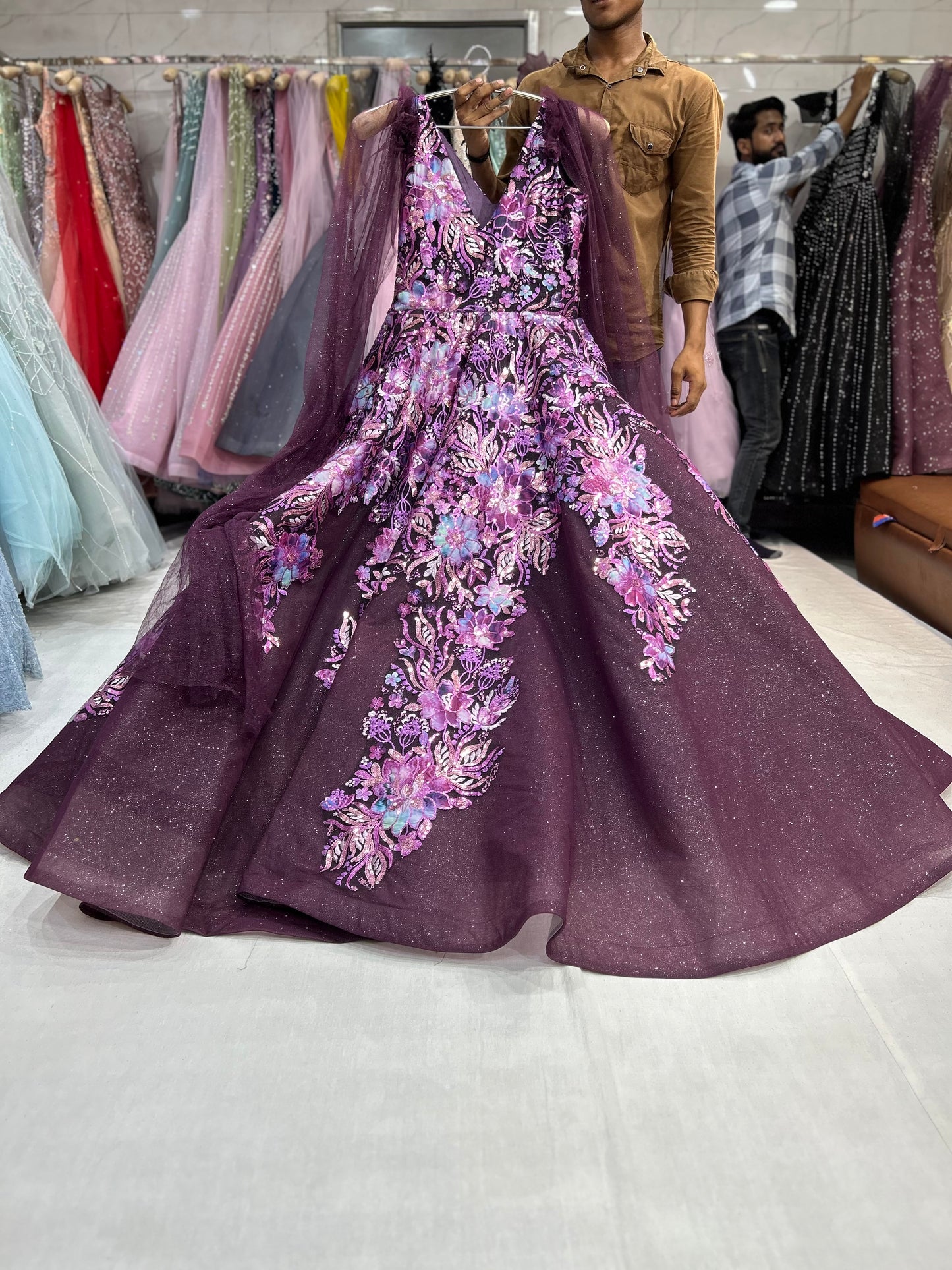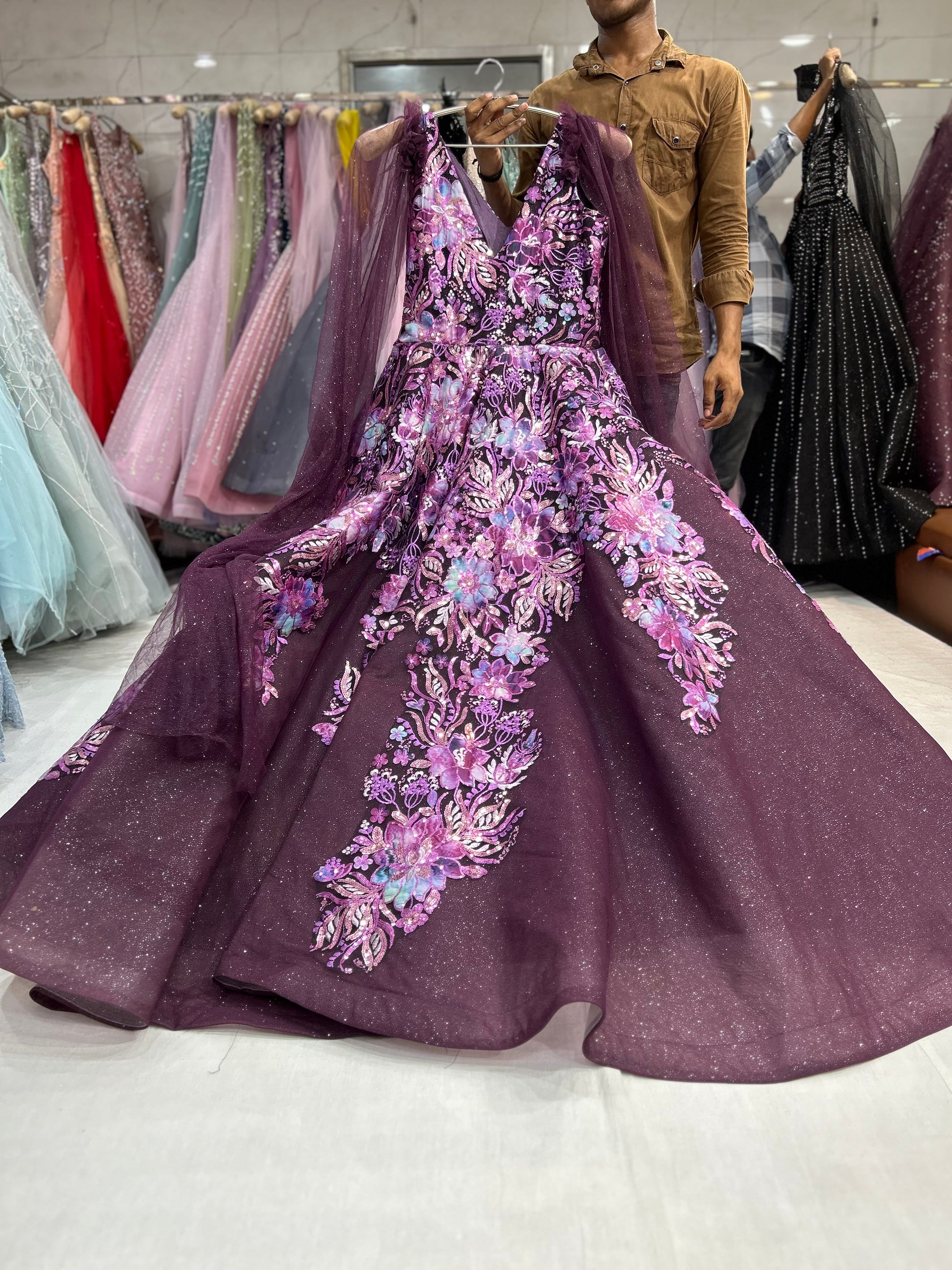 - ₹10,000 – ₹15,000: Glamorous gowns with detailed embroidery and embellishments