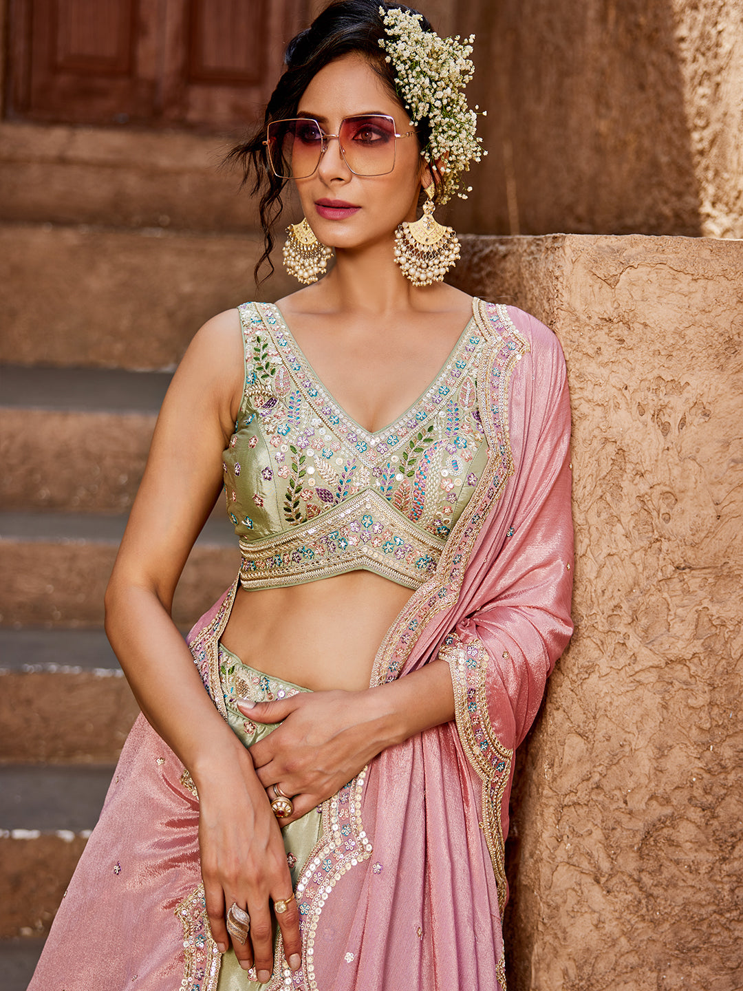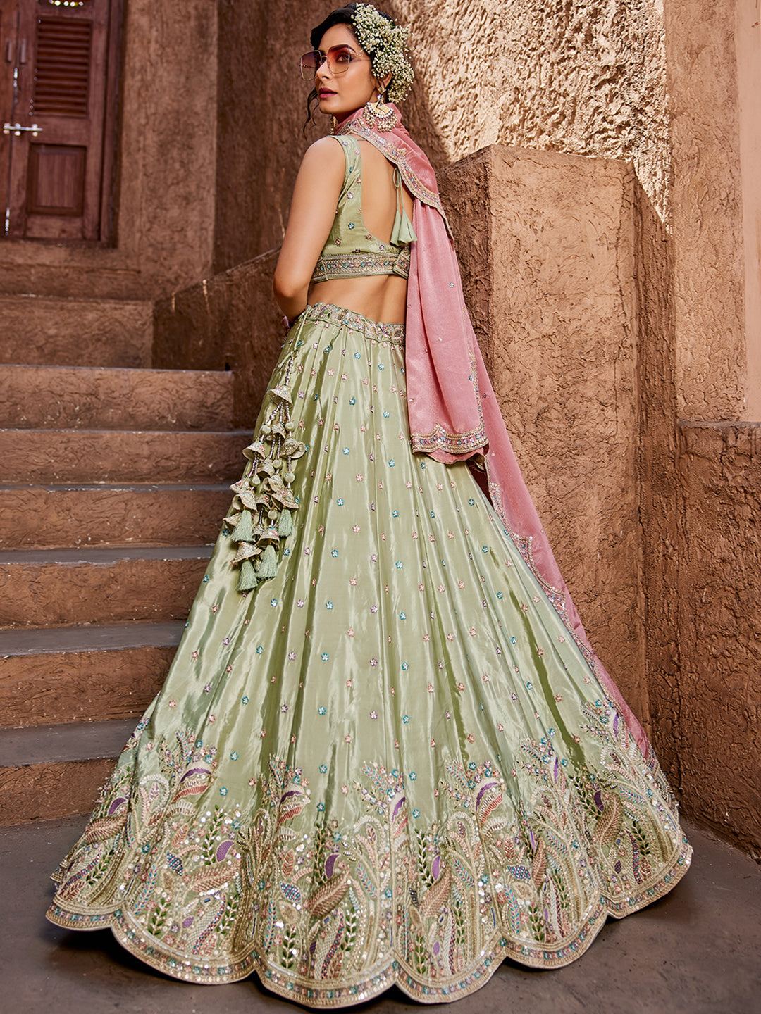 Attractive pista green peacock crop top Lehenga Happy Customer