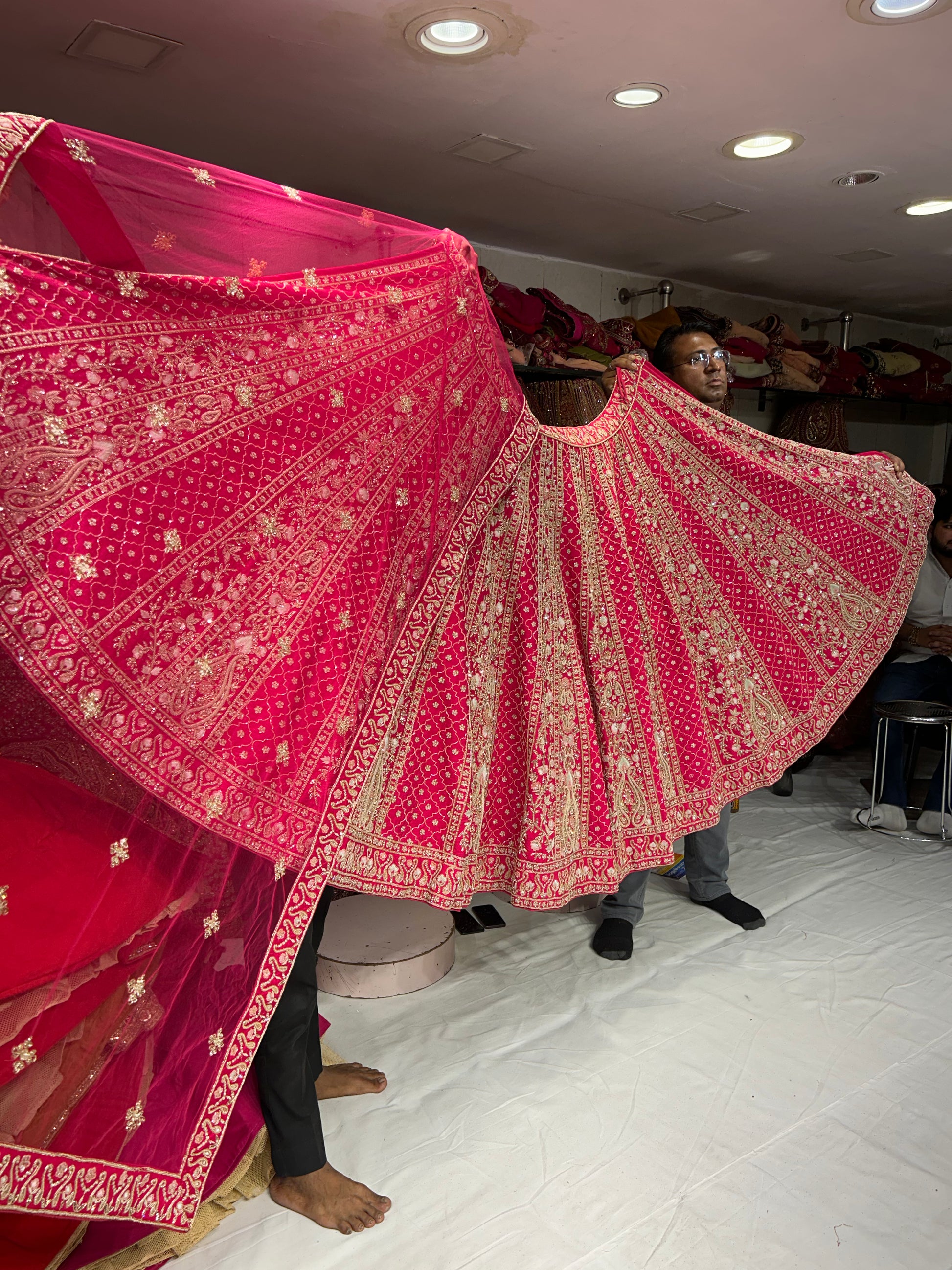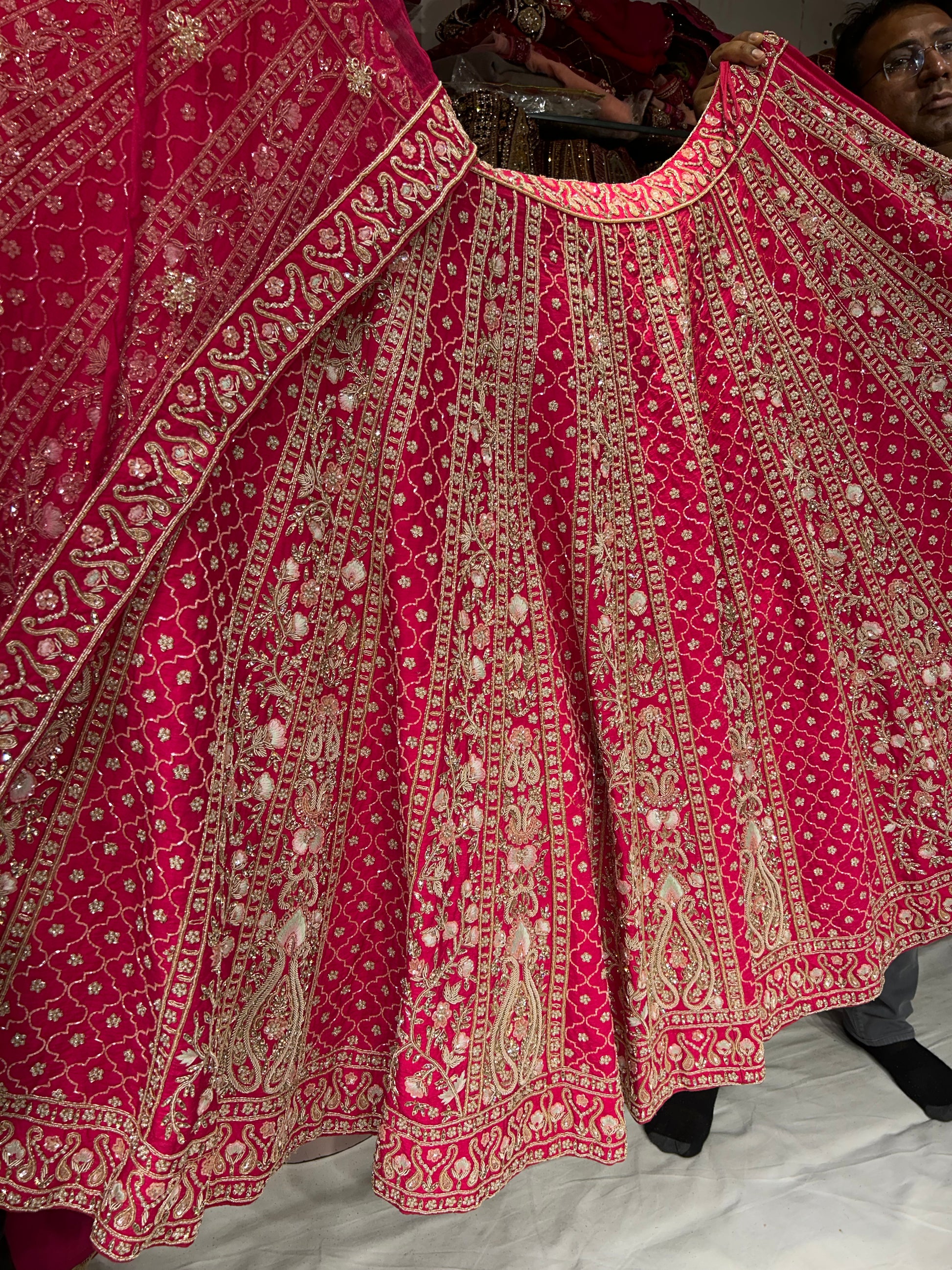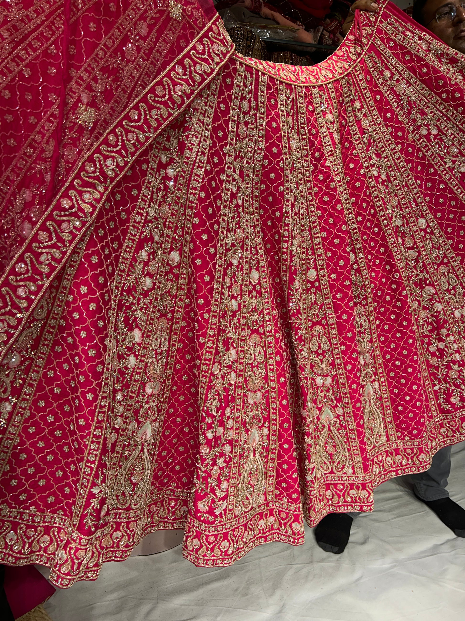 Glamorous Rani pink peacock Double dupatta Silk Bridal Lehenga happy customer