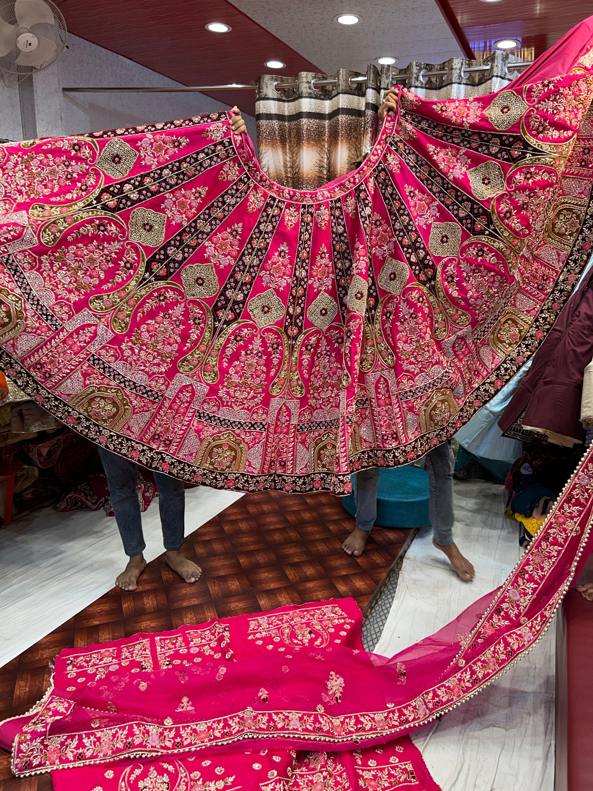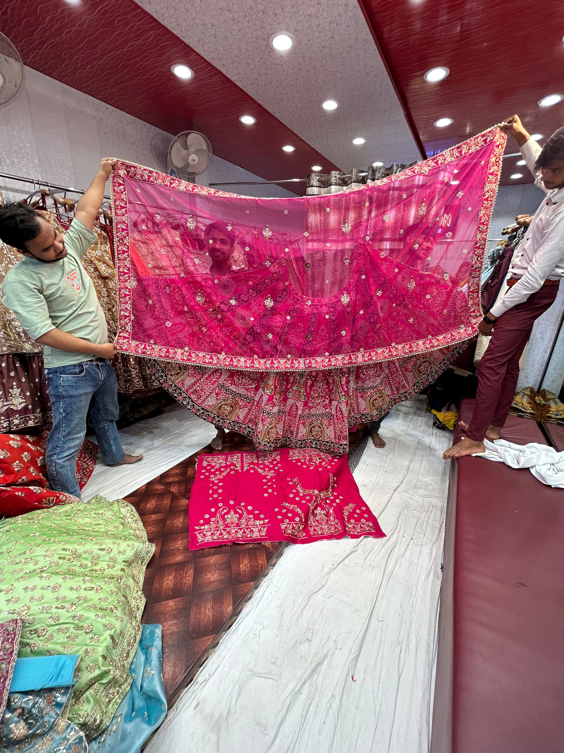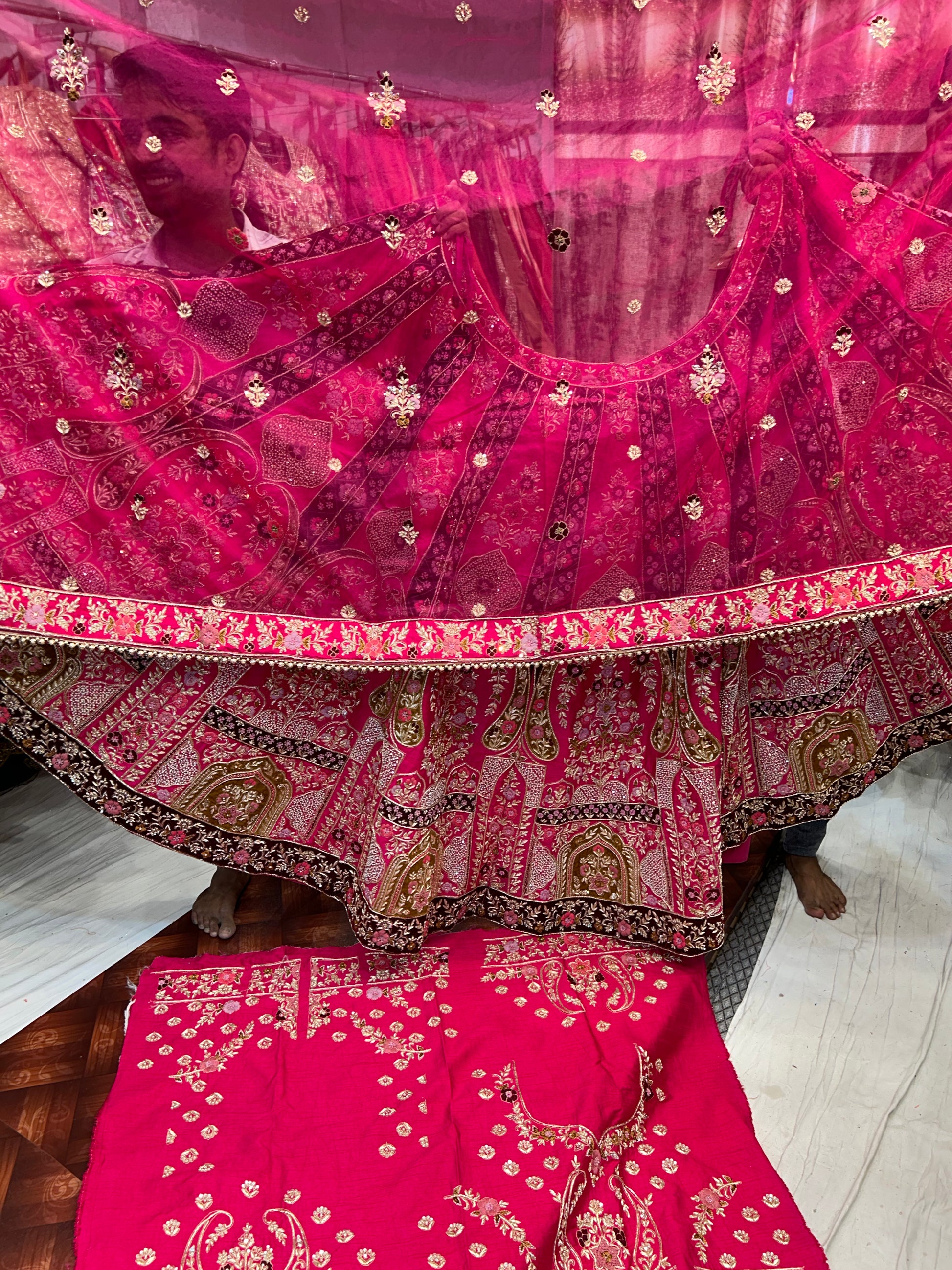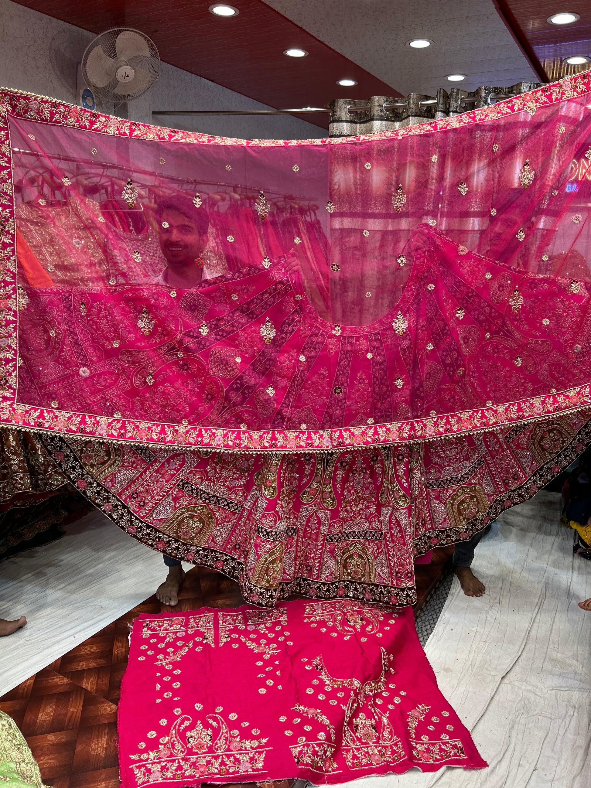 Glamorous Rani pink peacock Double dupatta Silk Bridal Lehenga happy customer