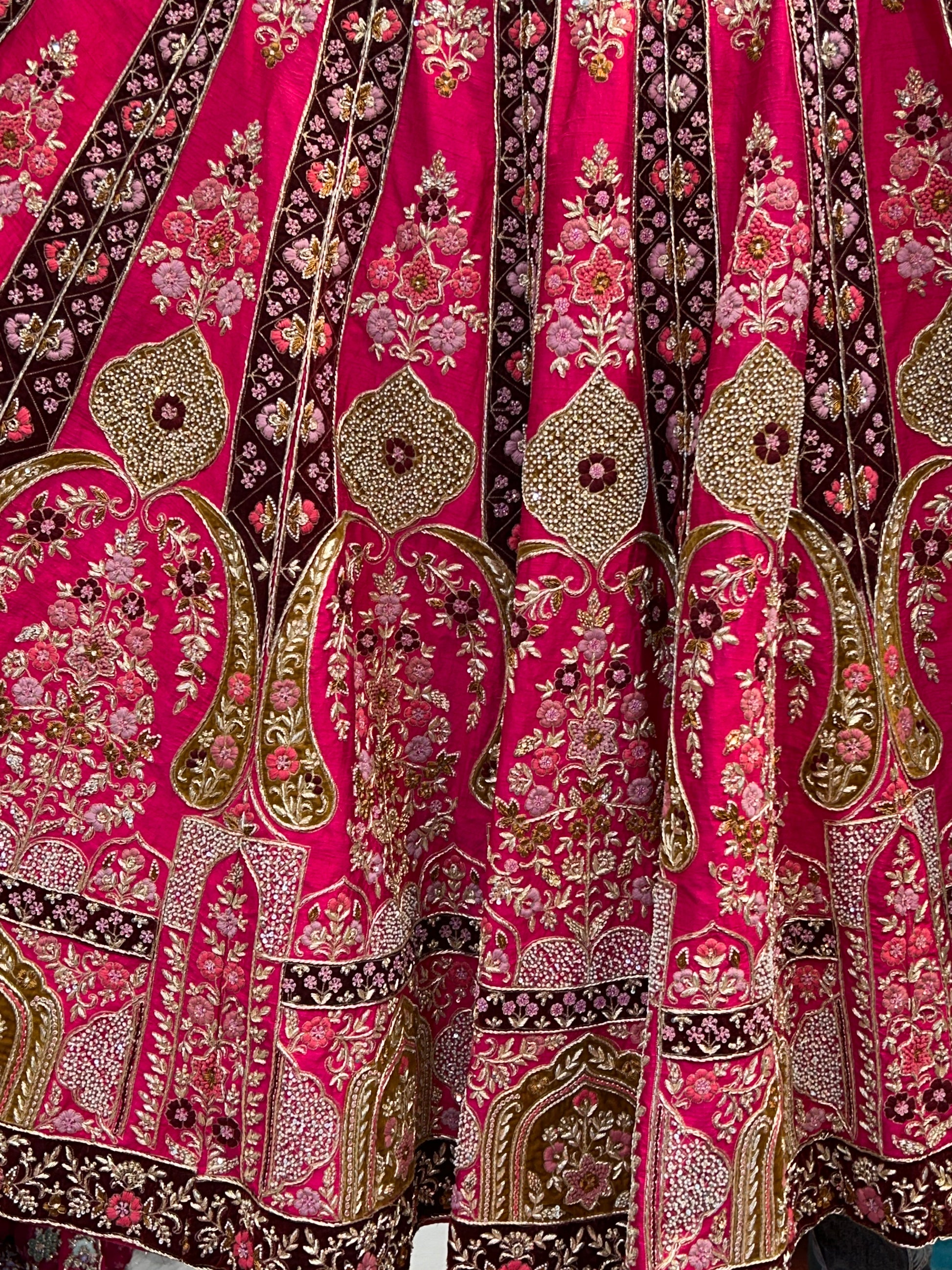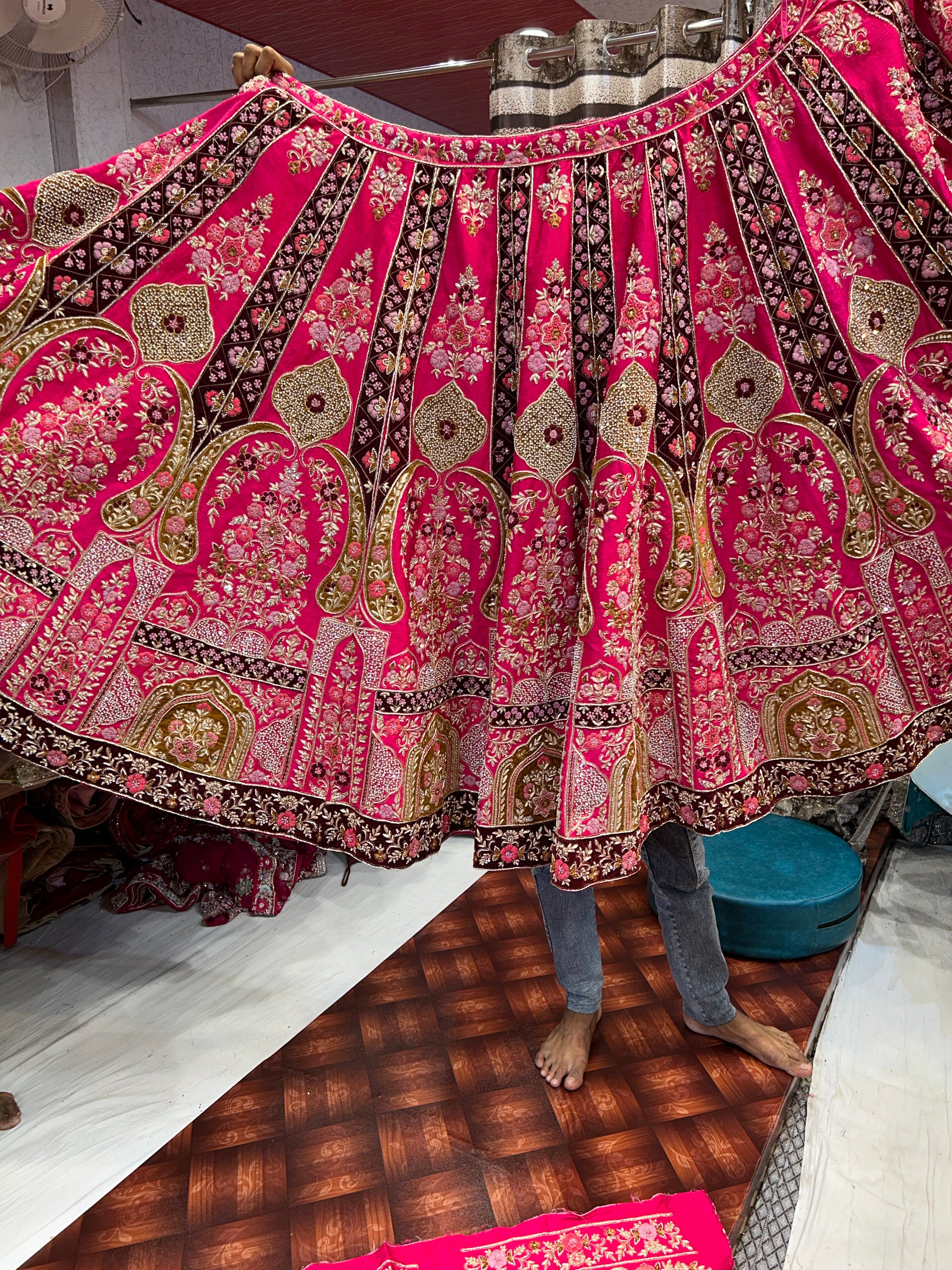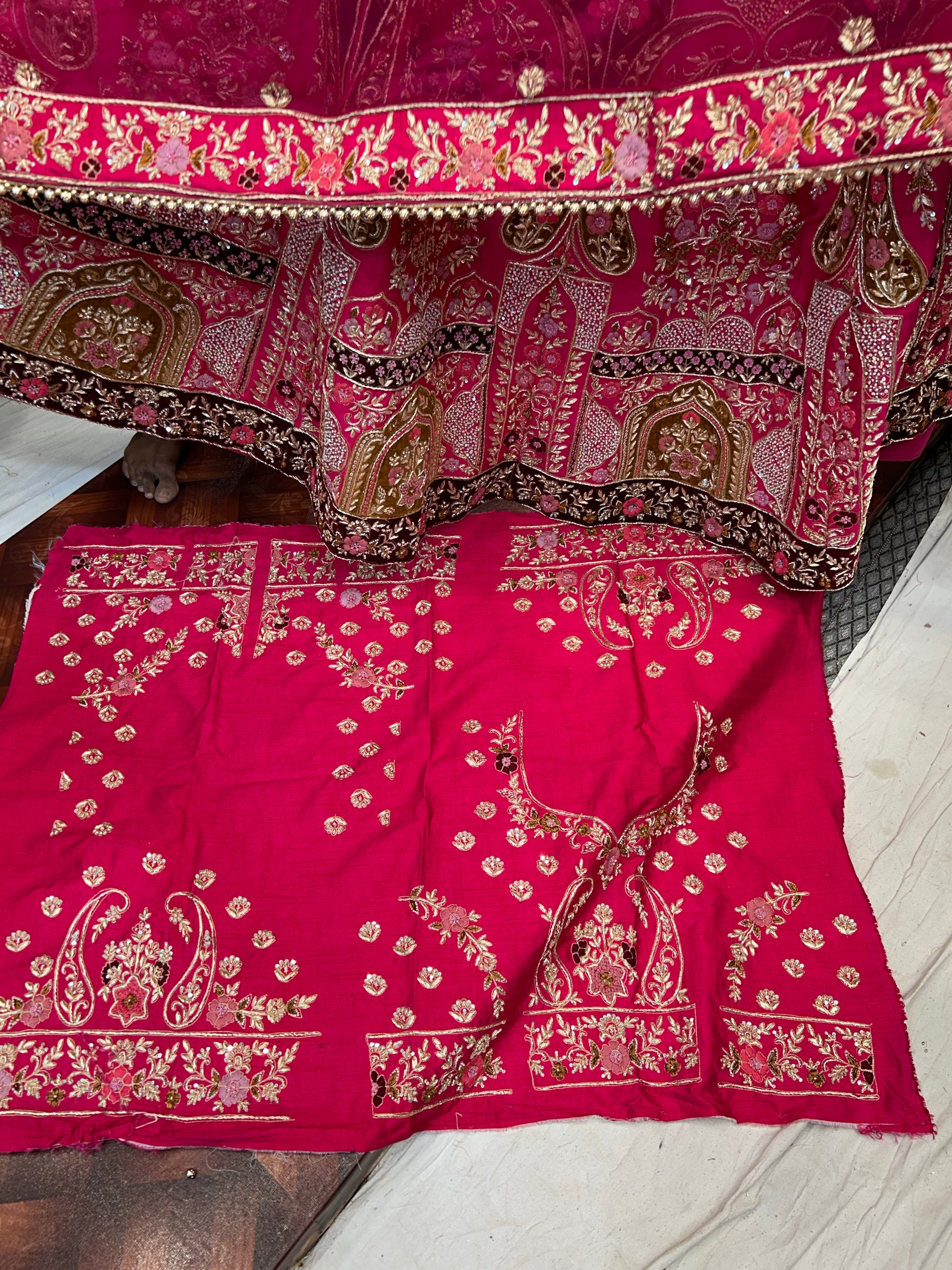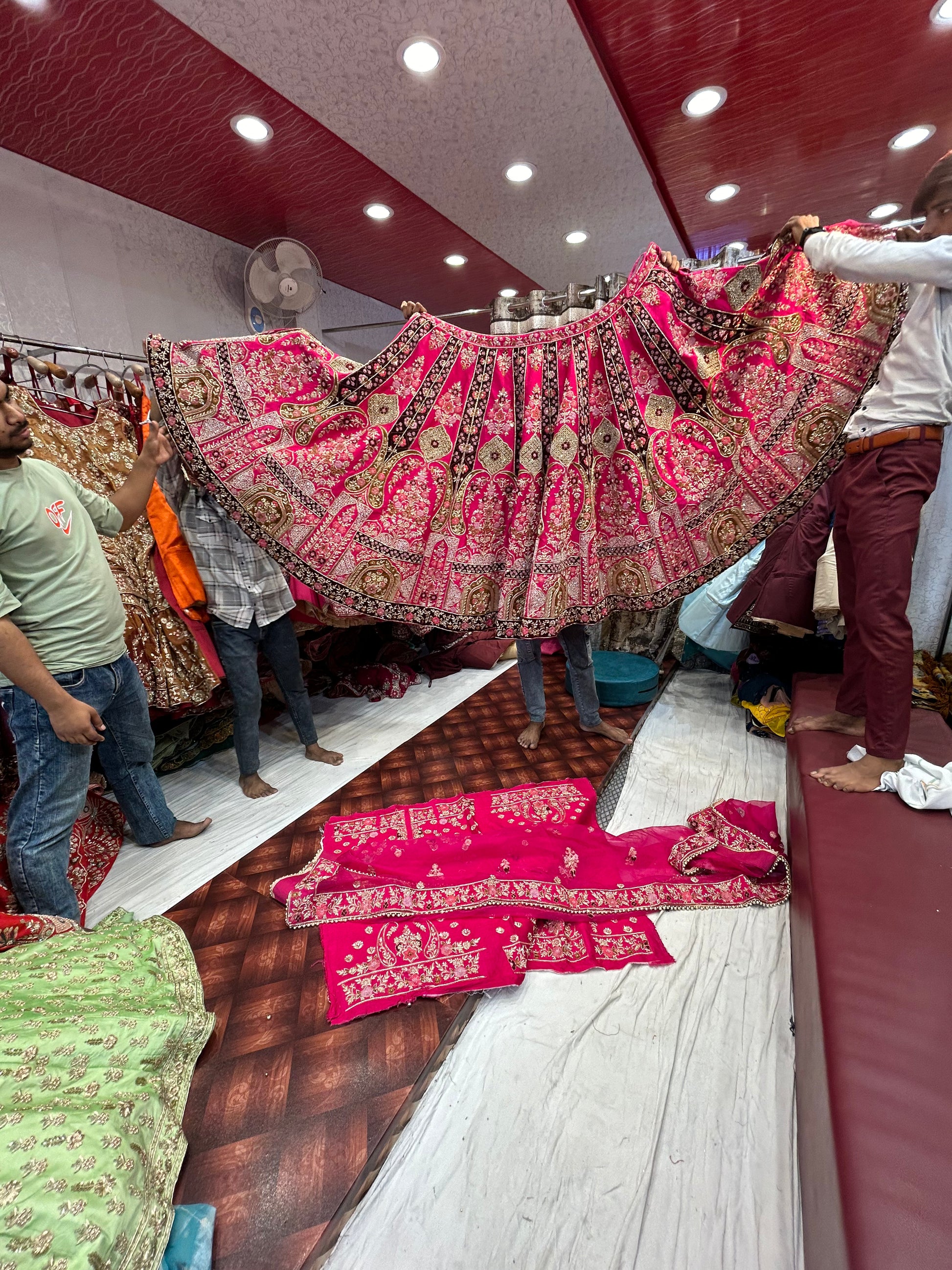 Glamorous Rani pink peacock Double dupatta Silk Bridal Lehenga happy customer