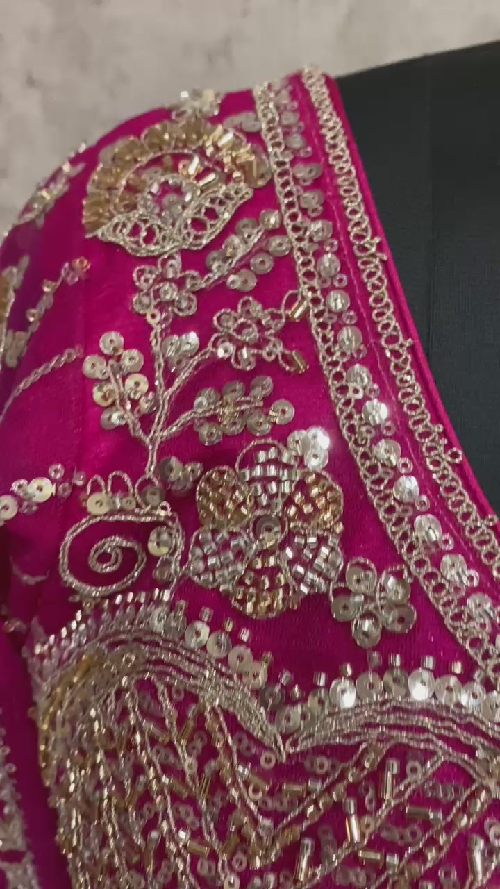 Glamorous Rani pink peacock Double dupatta Silk Bridal Lehenga happy customer