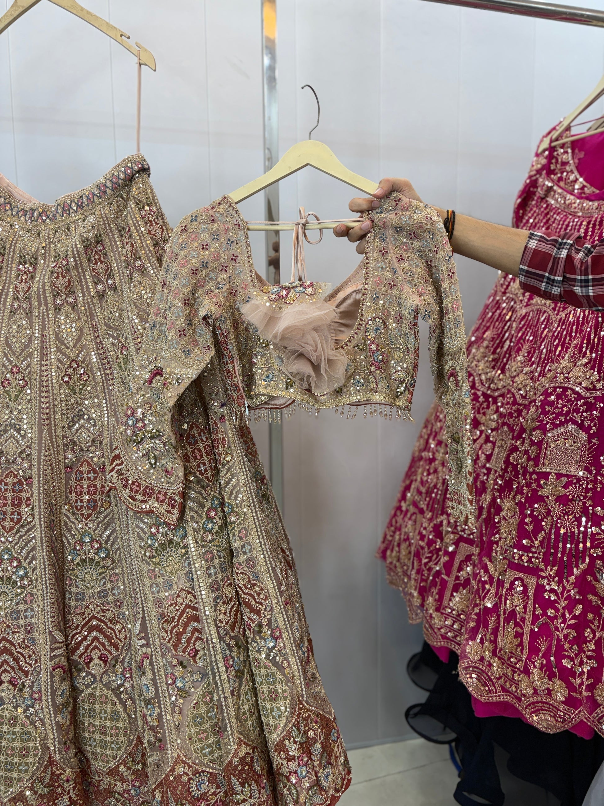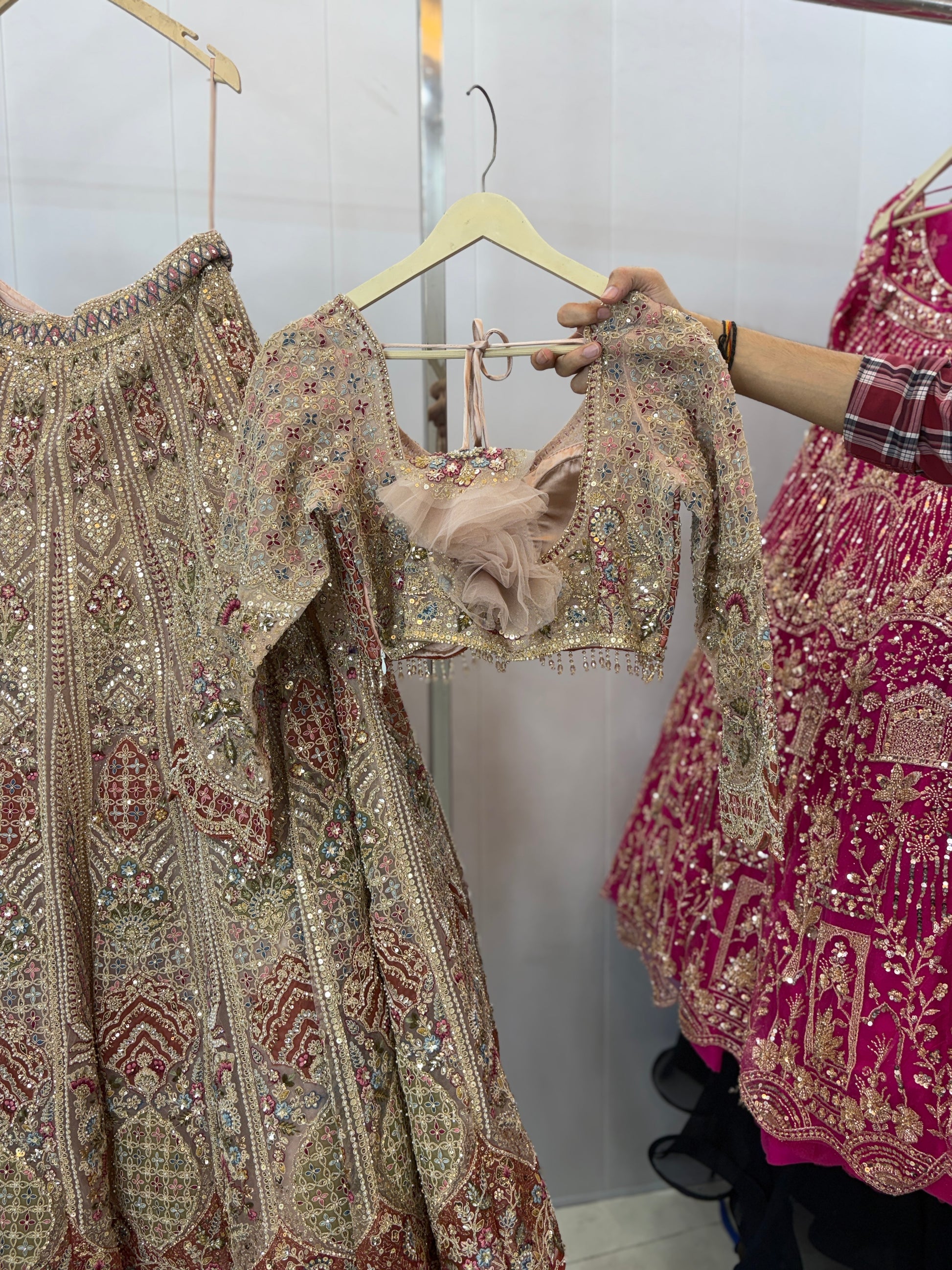 المارون المذهل Golden Bridal Lehenga (عميل سعيد)