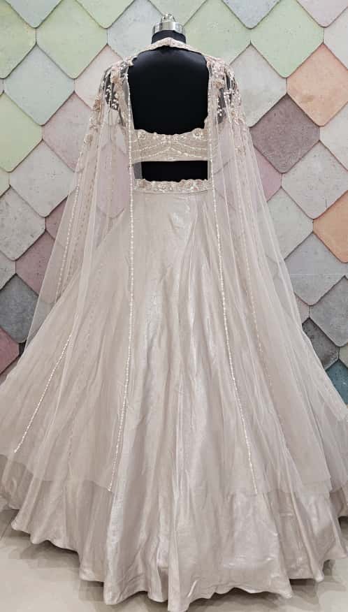 Lehenga set in elegant English tones on free-flowing imported fabric.