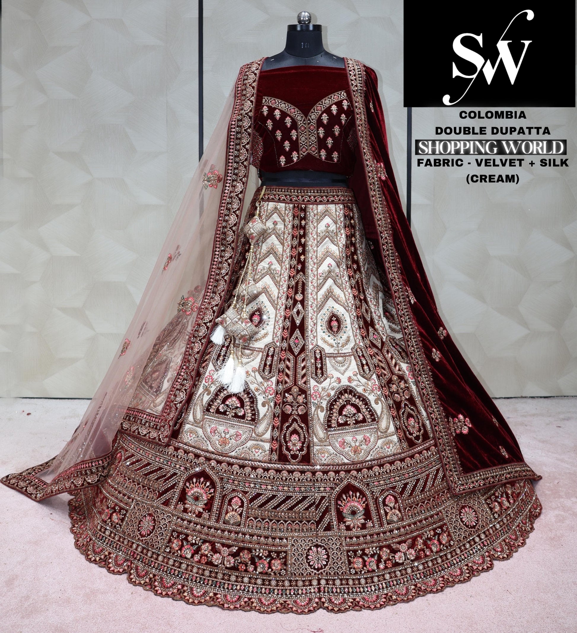 المارون المذهل Golden Bridal Lehenga (عميل سعيد)