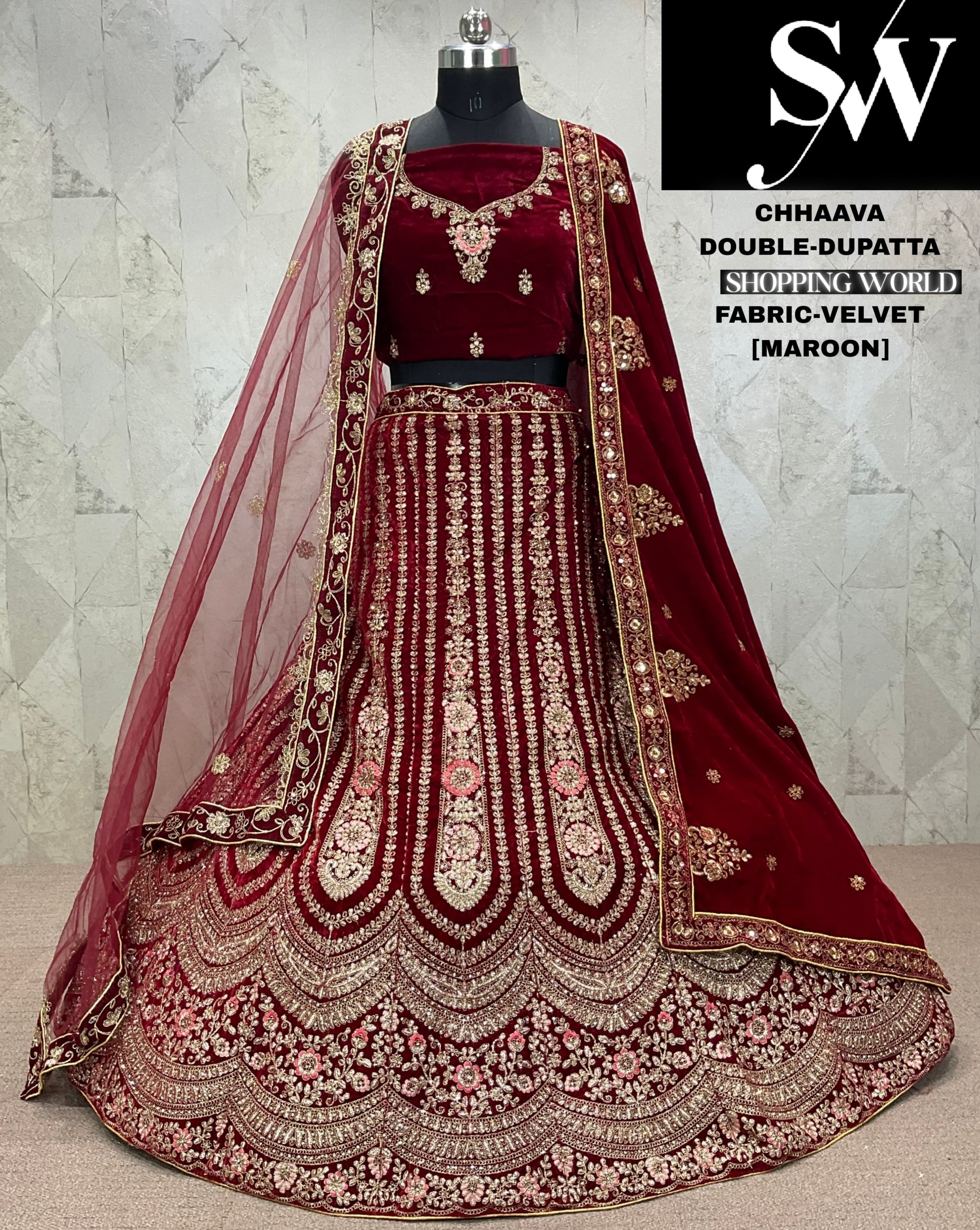 المارون المذهل Golden Bridal Lehenga (عميل سعيد)
