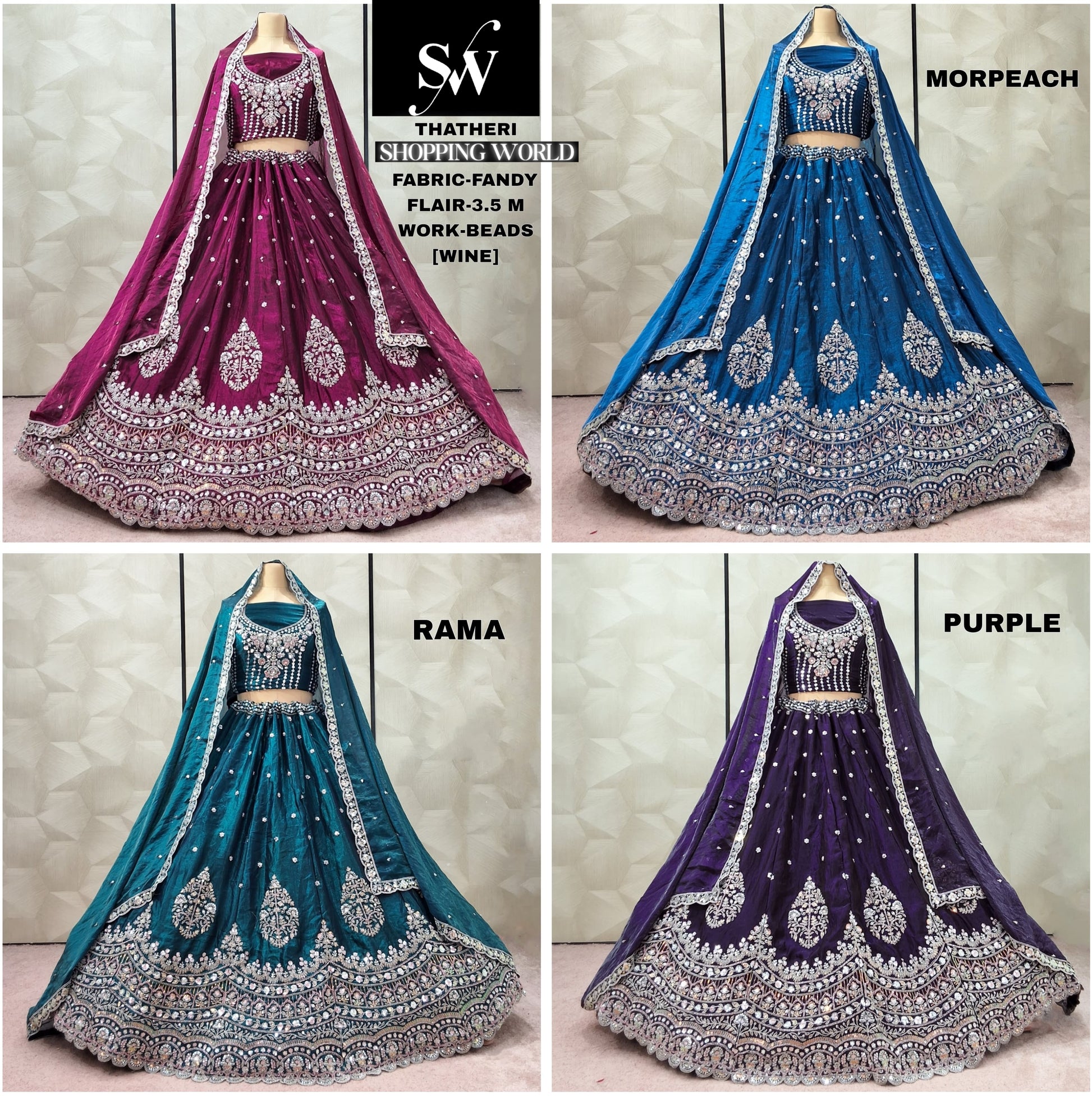 Embellished Wine Morpeach Blue Rama green purple Fandy Lehenga