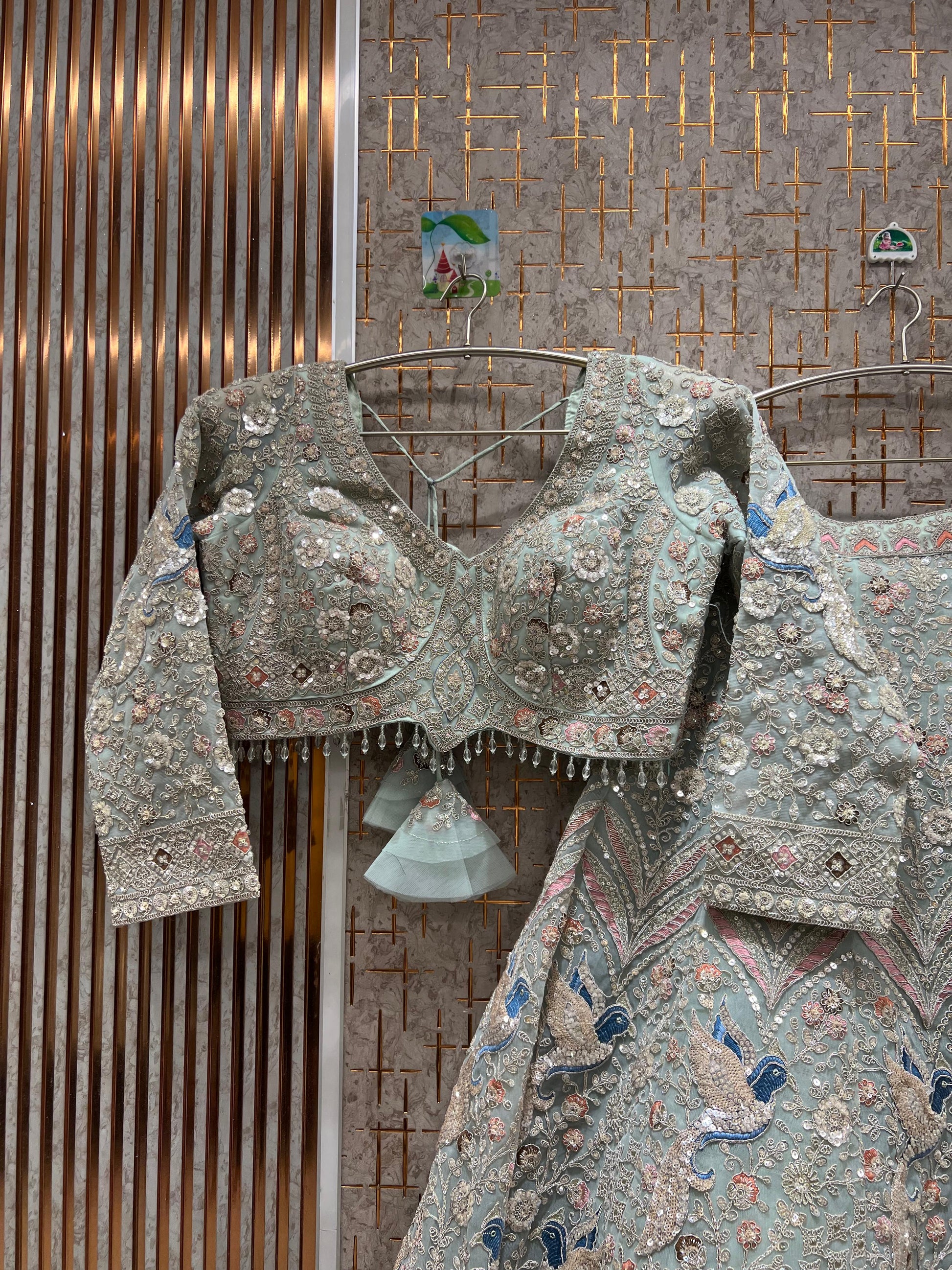 Attractive pista green peacock crop top Lehenga Happy Customer