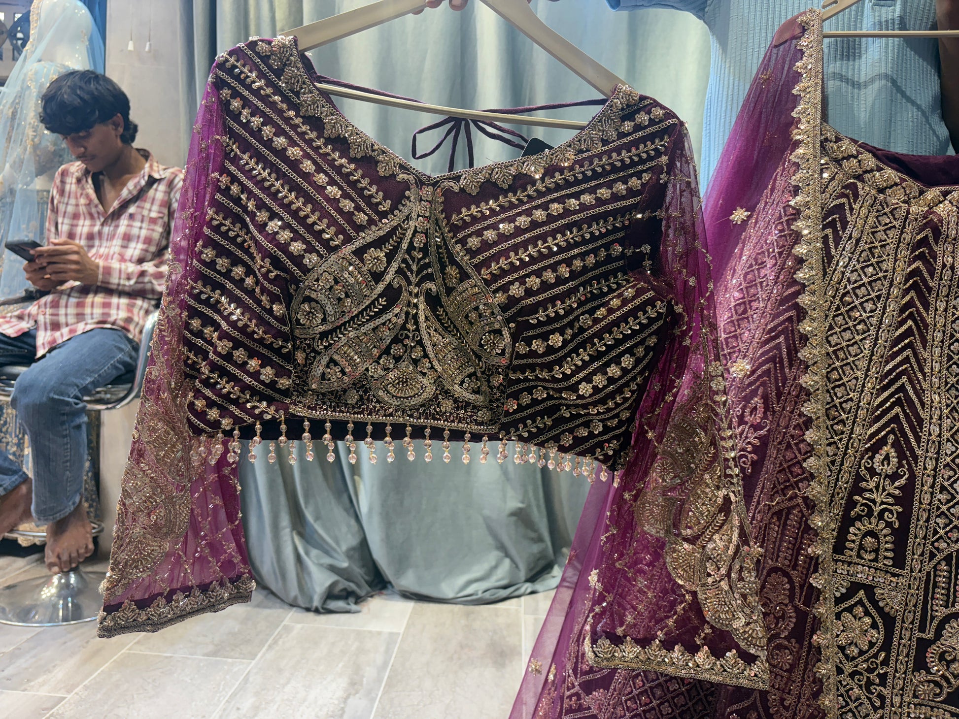 المصمم jhumka Maroon bridal lehenga (عميل سعيد)