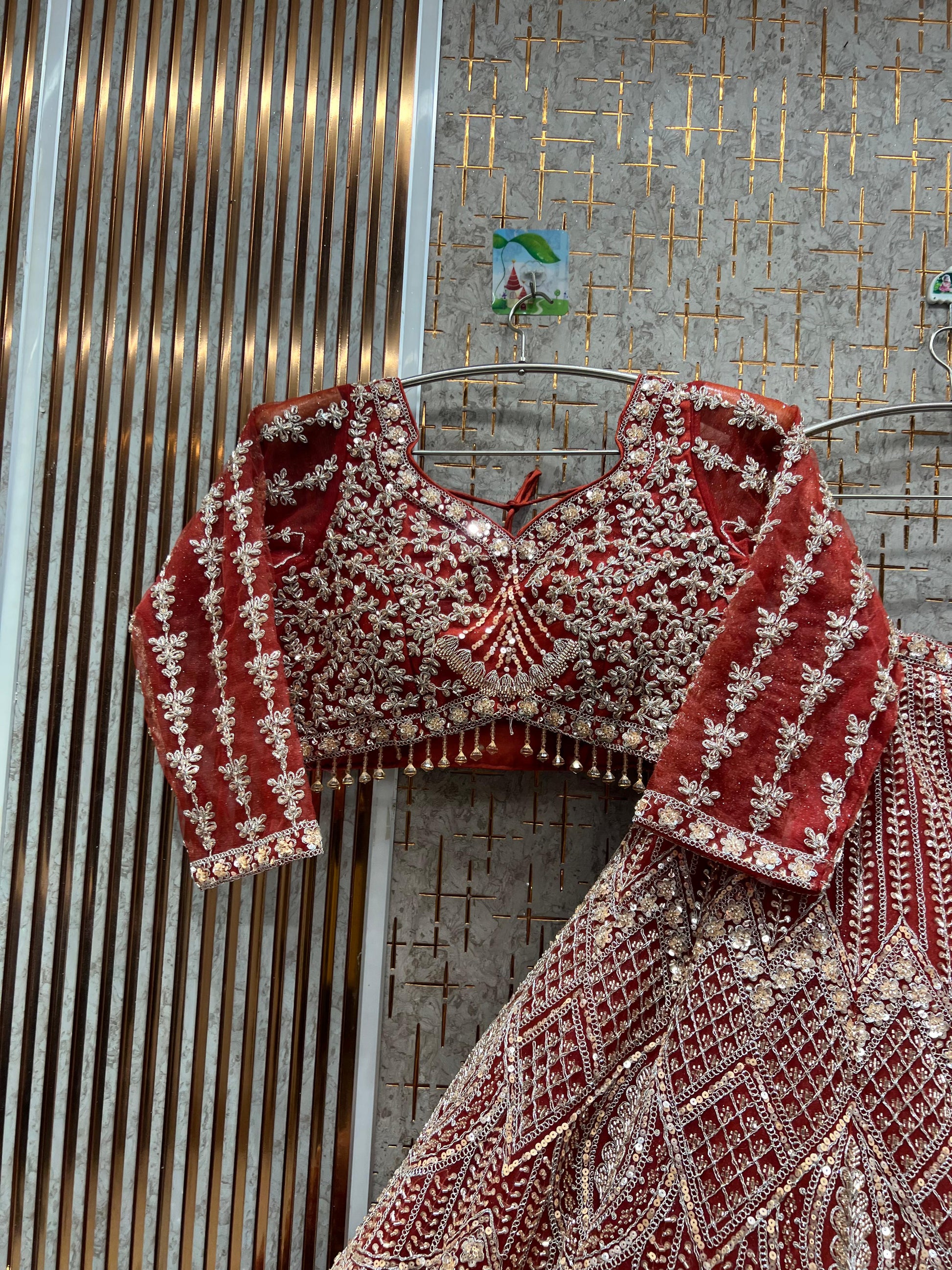 جميل Jhumka Red Bridal Lehenga (عميل سعيد)