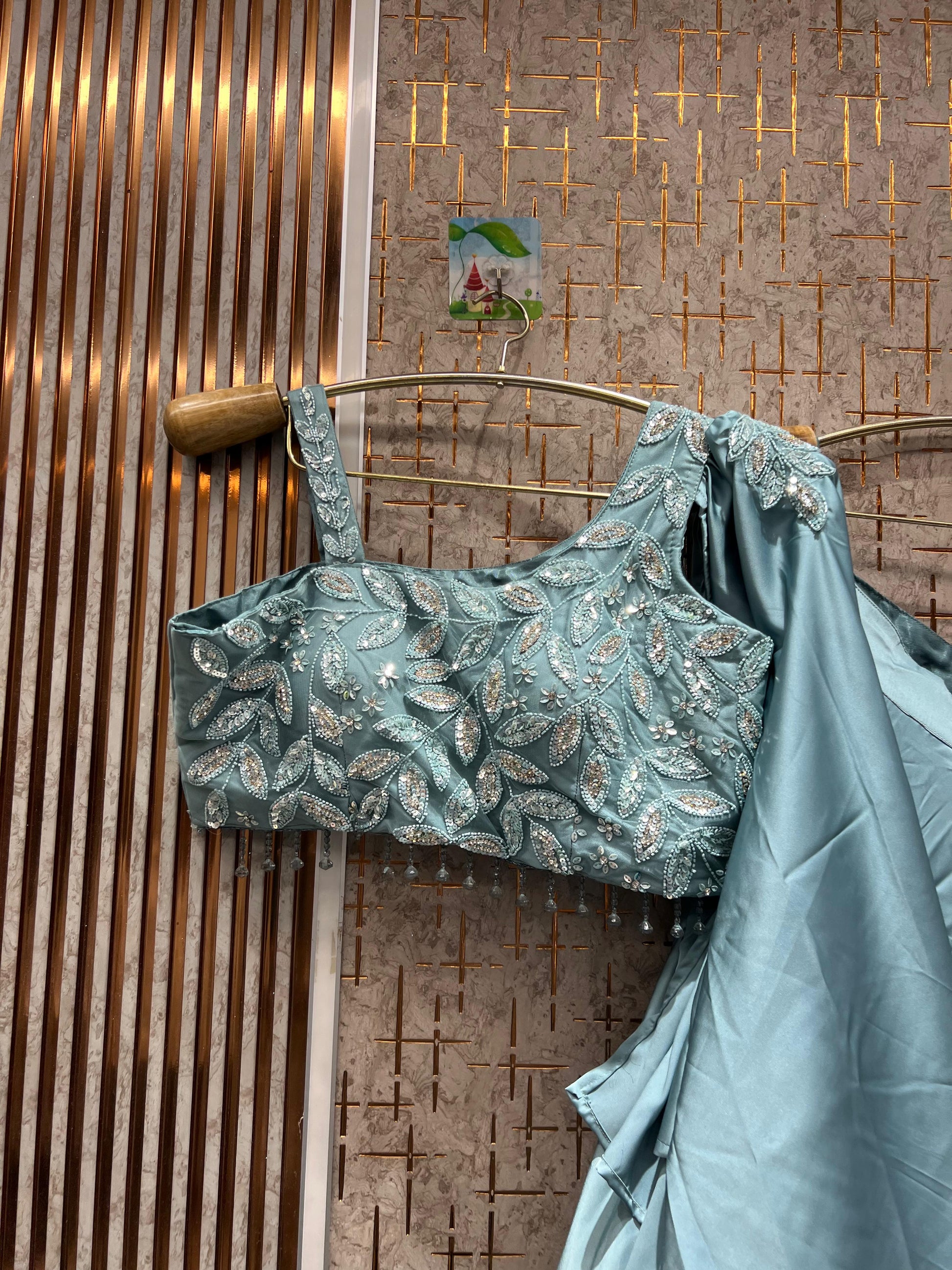 Attractive pista green peacock crop top Lehenga Happy Customer