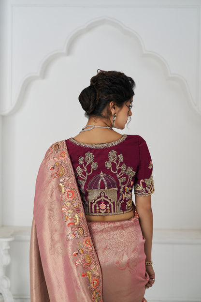 Lovely pink Saree 111 Prettt pink Color Saree with multi-thread and sequins embroidery for wedding