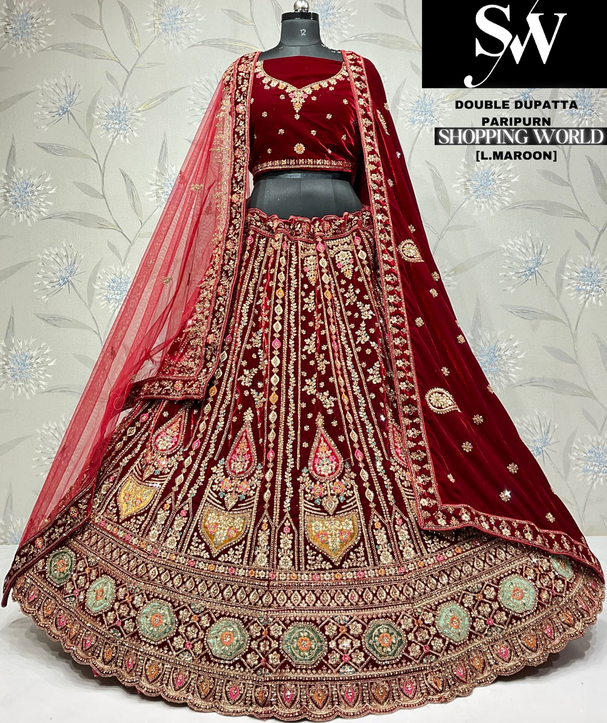 Pretty dark maroon Velvet bridal Lehenga