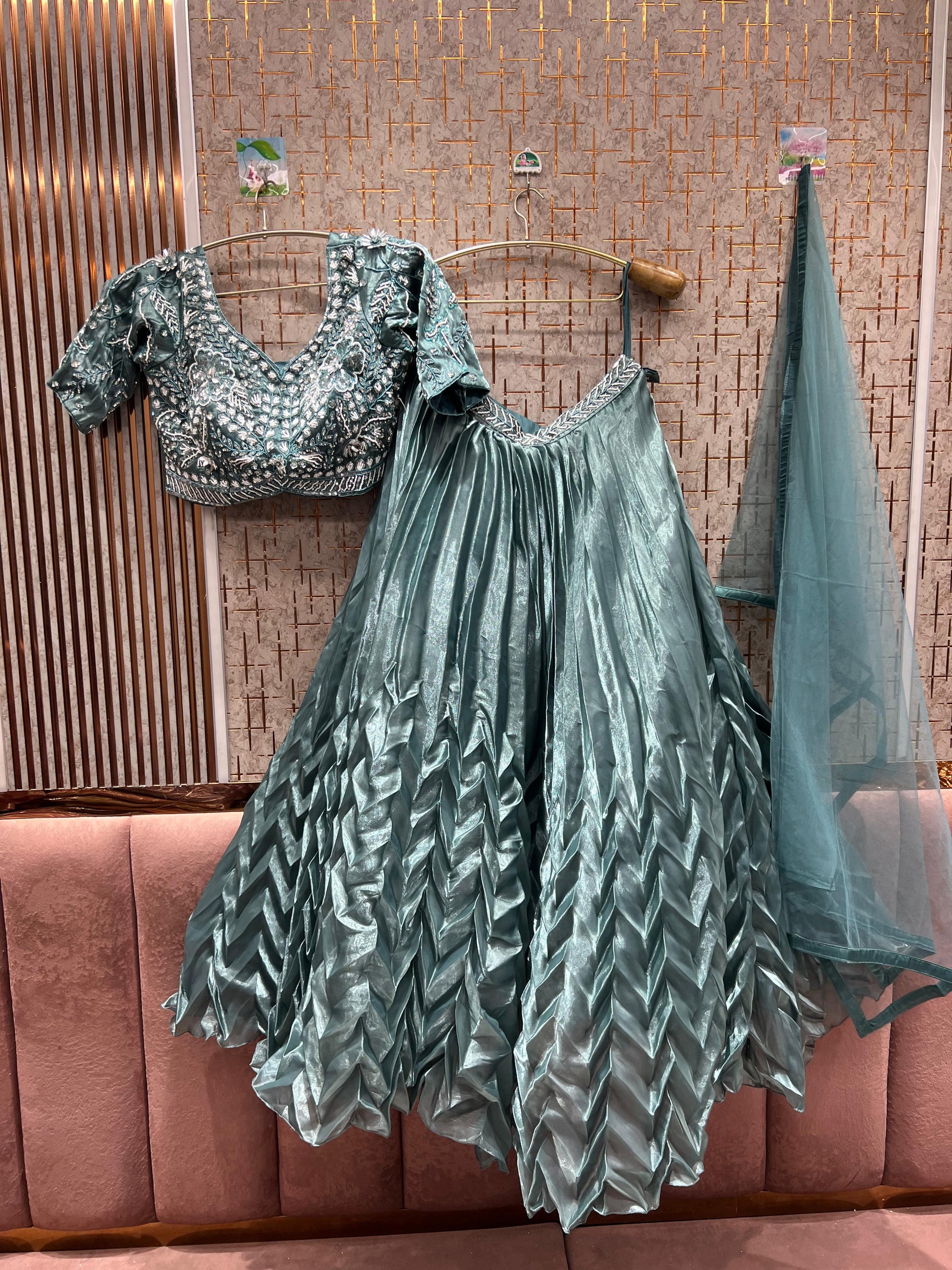 - ₹25,000 – ₹50,000: Premium partywear lehengas with intricate craftsmanship