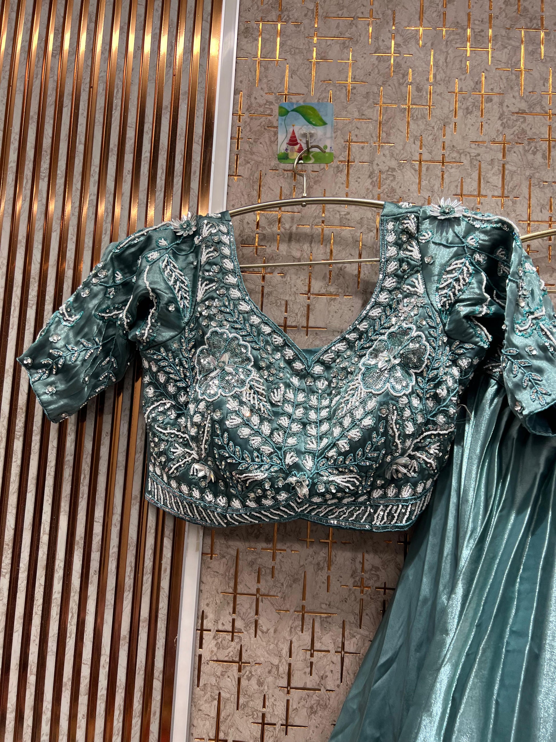 Attractive pista green peacock crop top Lehenga Happy Customer