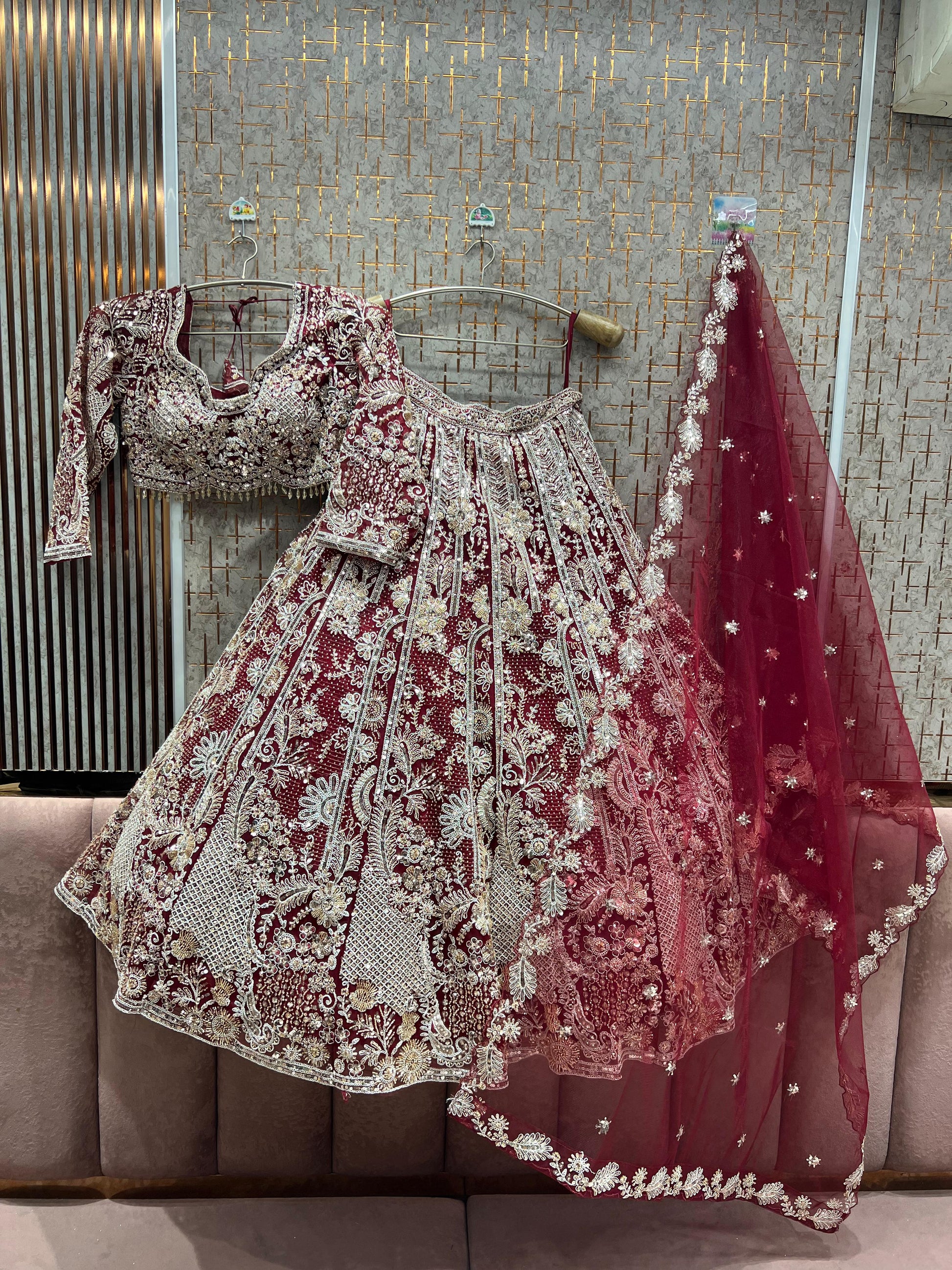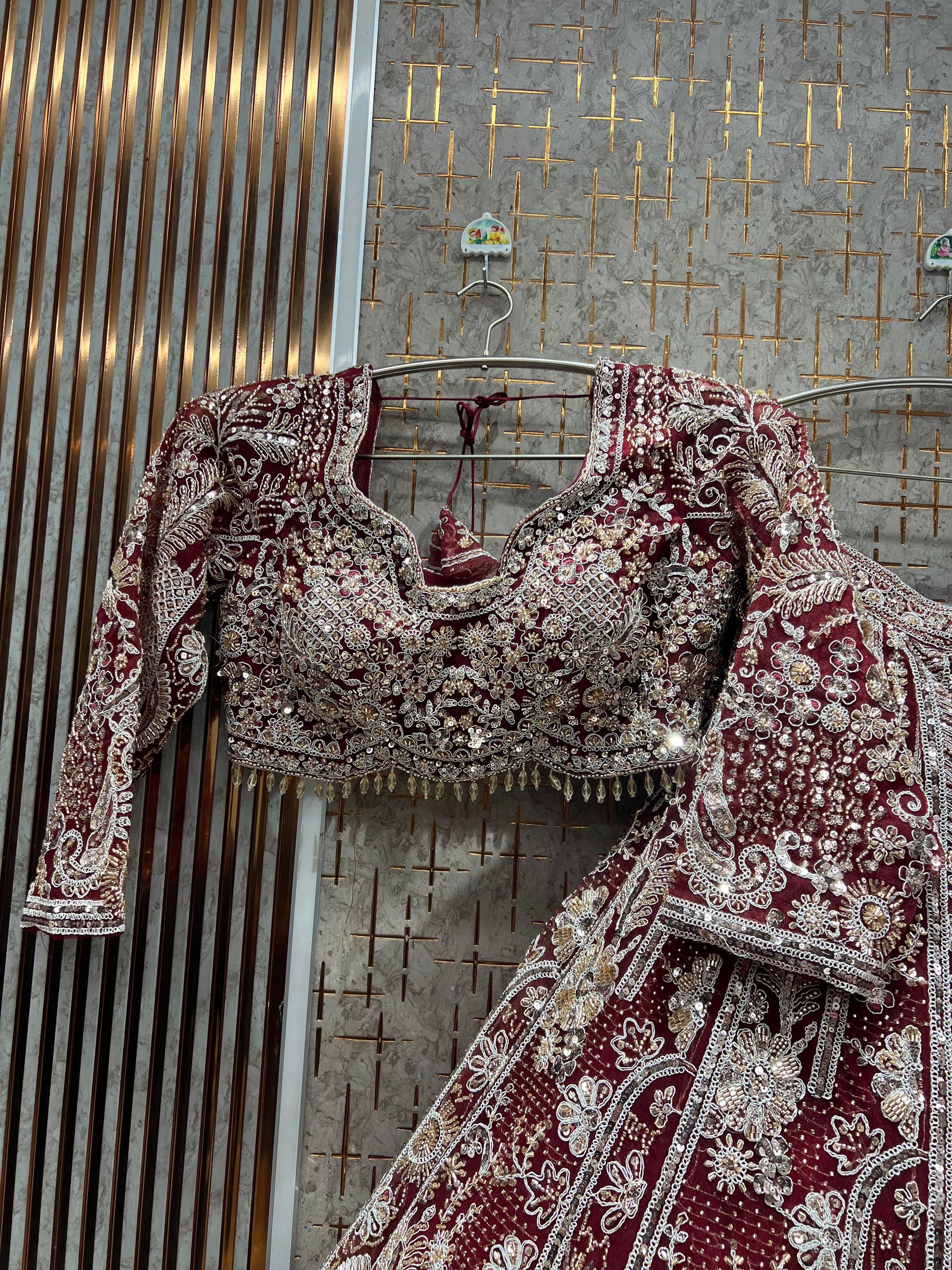 Designer jhumka Maroon bridal lehenga ( happy customer)
