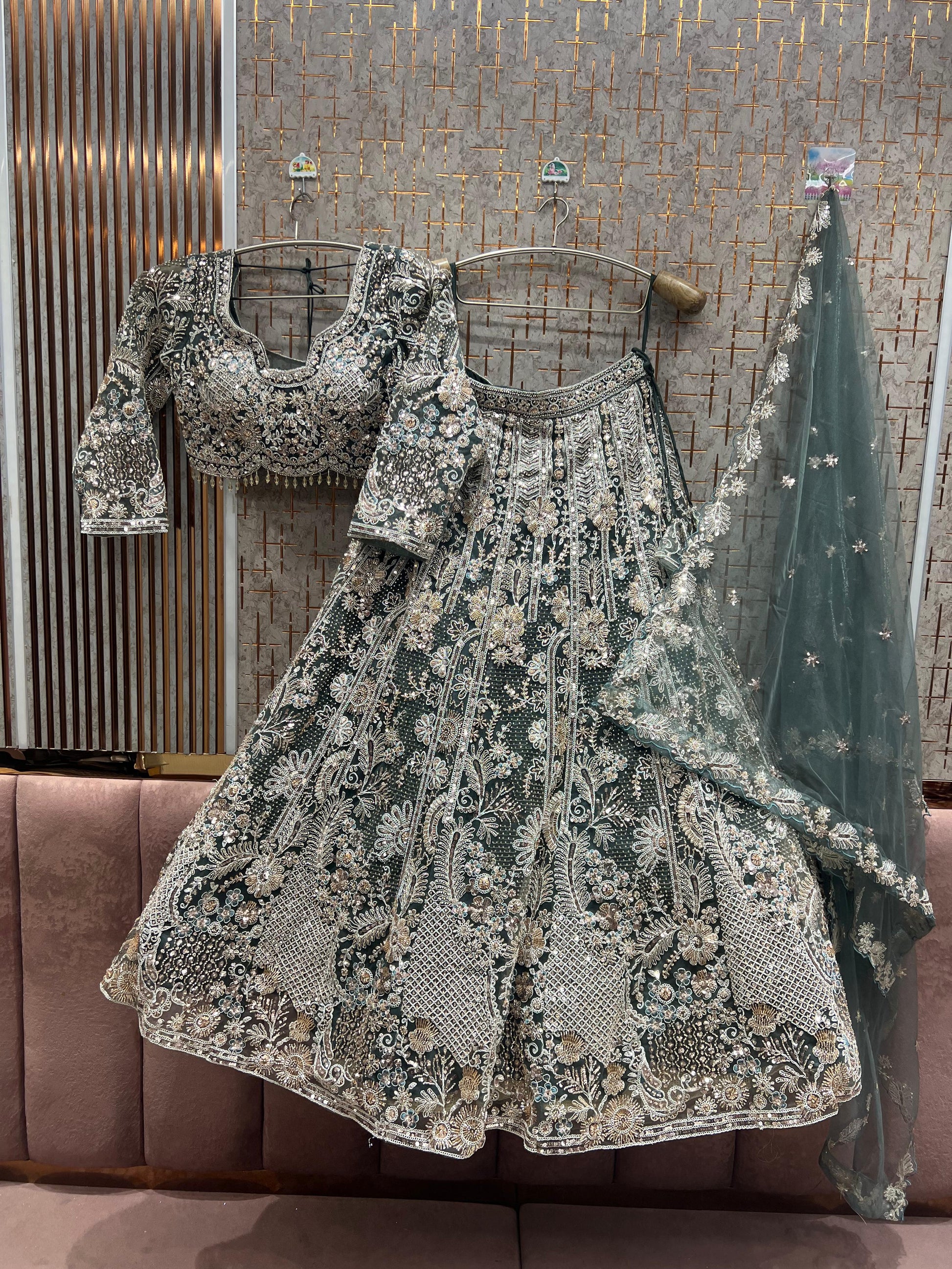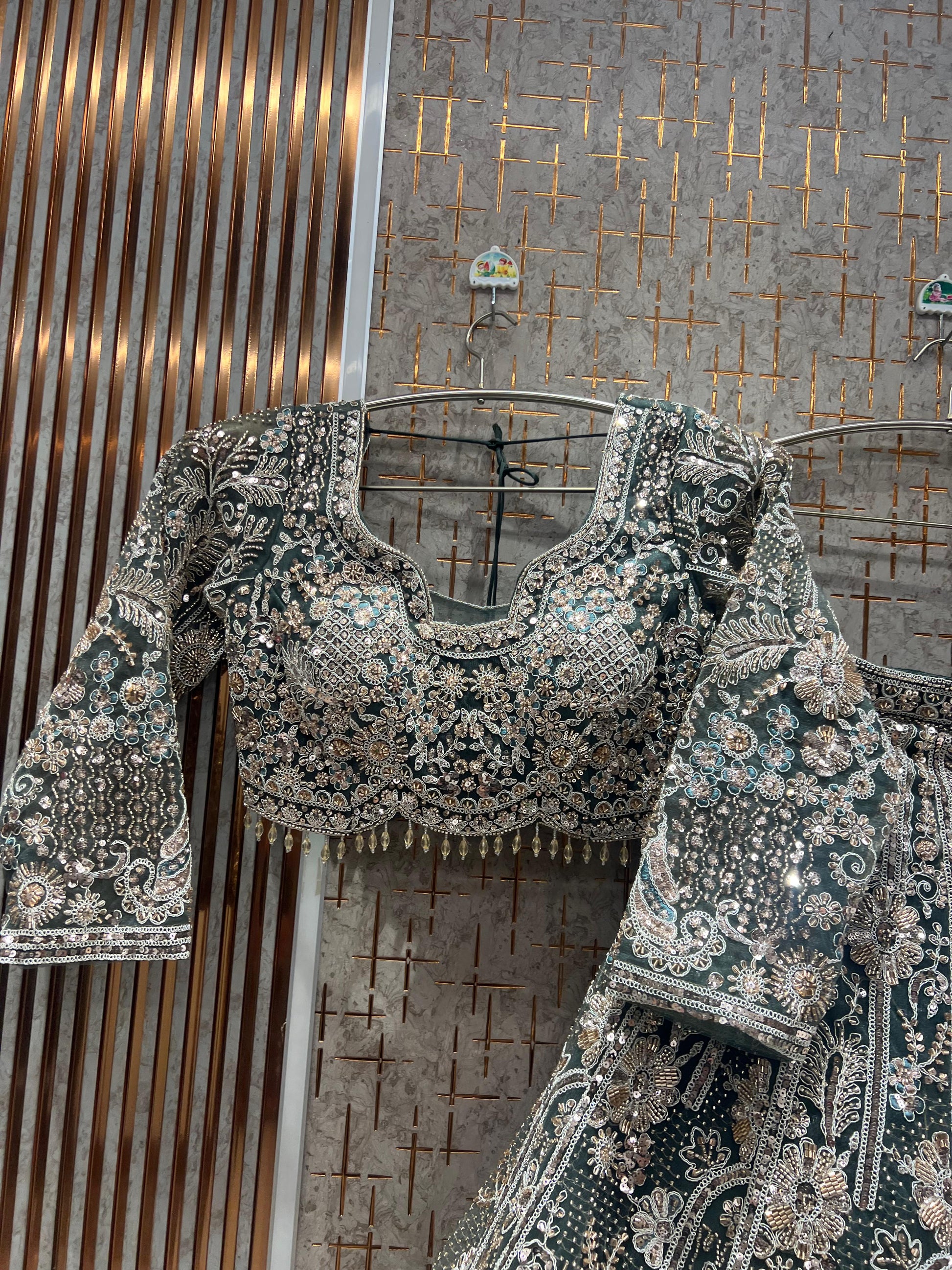 Attractive pista green peacock crop top Lehenga Happy Customer