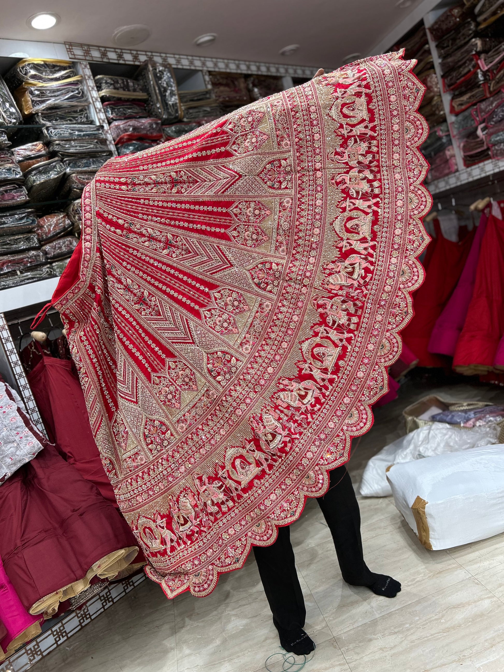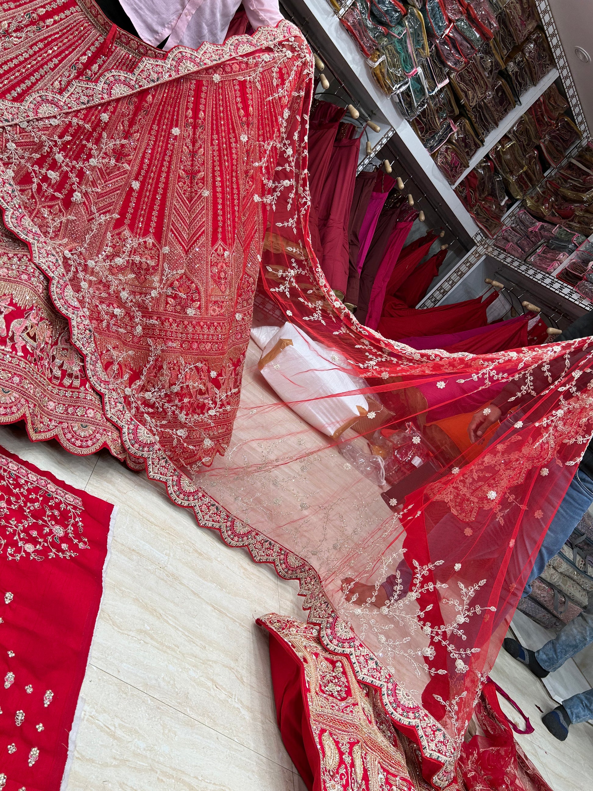 Royal Red Bridal Lehenga Double tail Dupatta with Dupatta happy customer