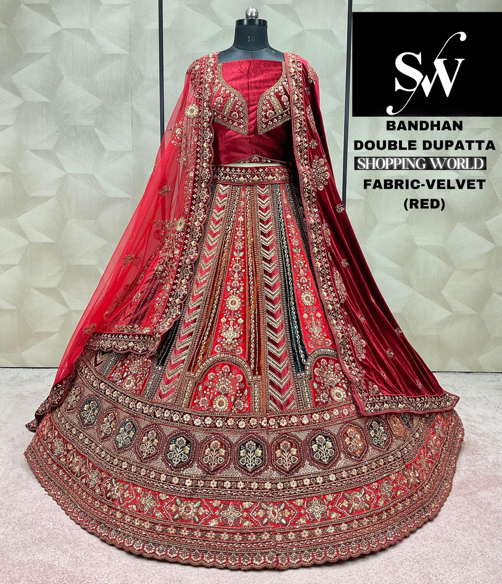 Red Lehenga velvet fabric