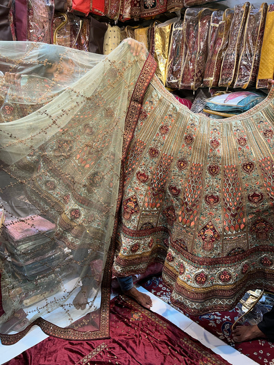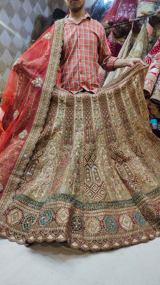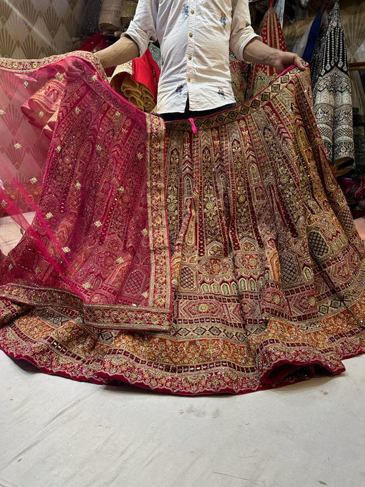 Eye catching maroon pure handwork zardozi dabka lehenga