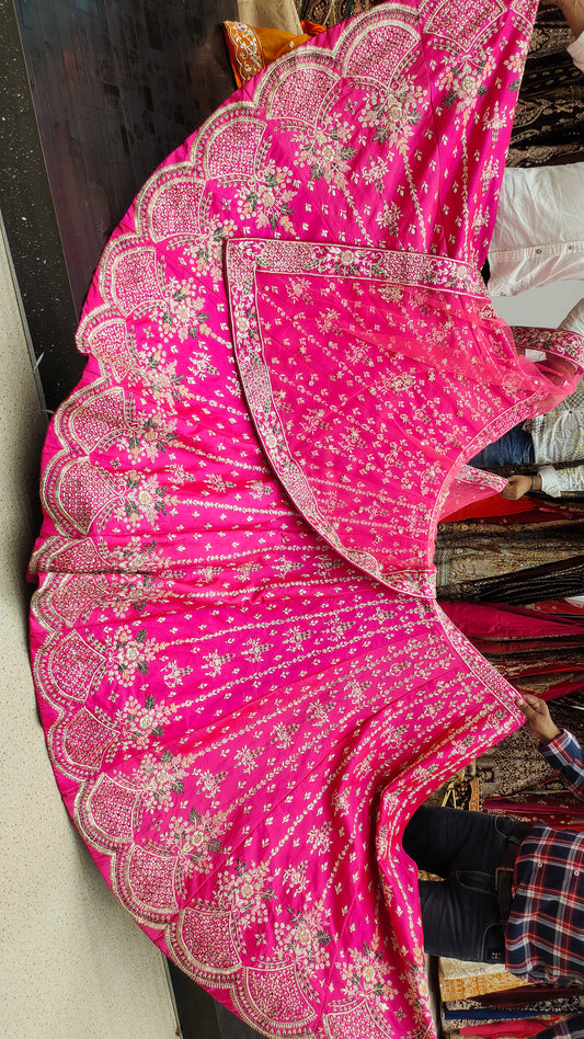 Fabulous Rani pink peacock Double Duptta Silk Bridal lehenga