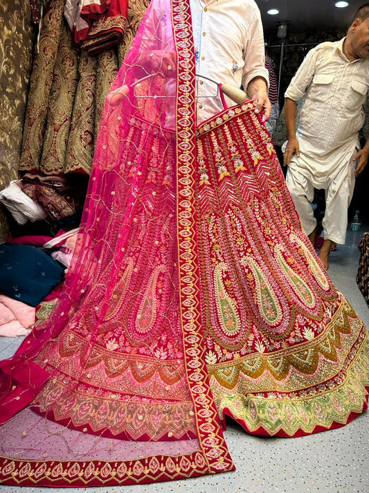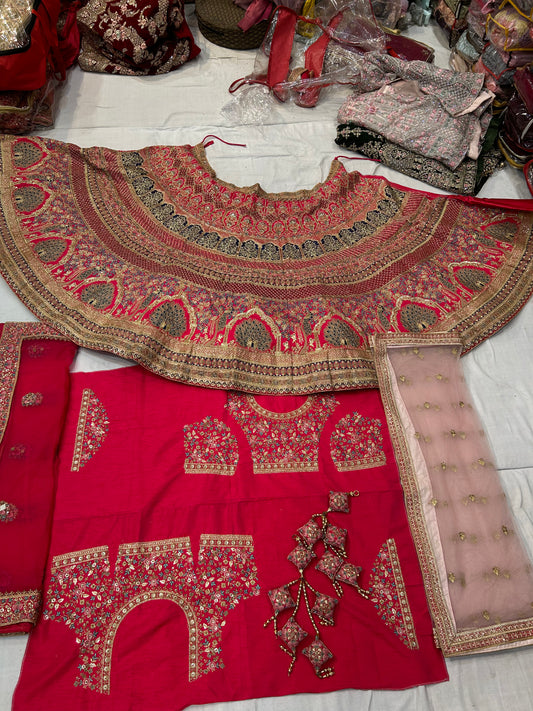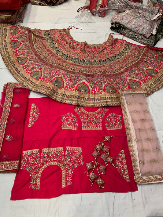 Pleasing handwork Sabyasachi silk red rani pink bridal Lehenga (Happy Customer )