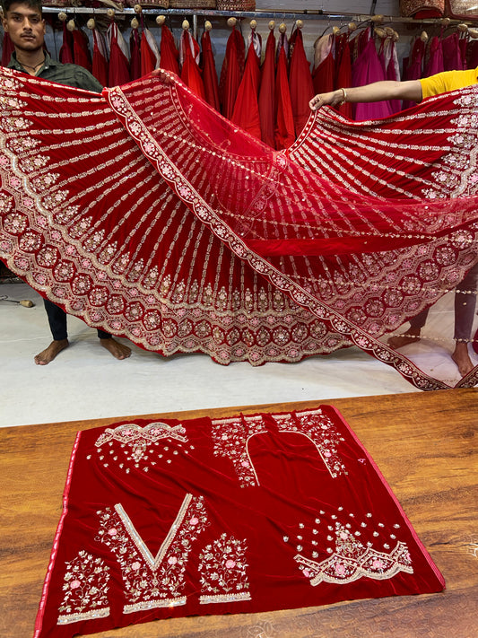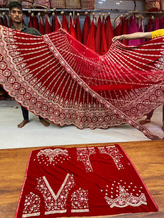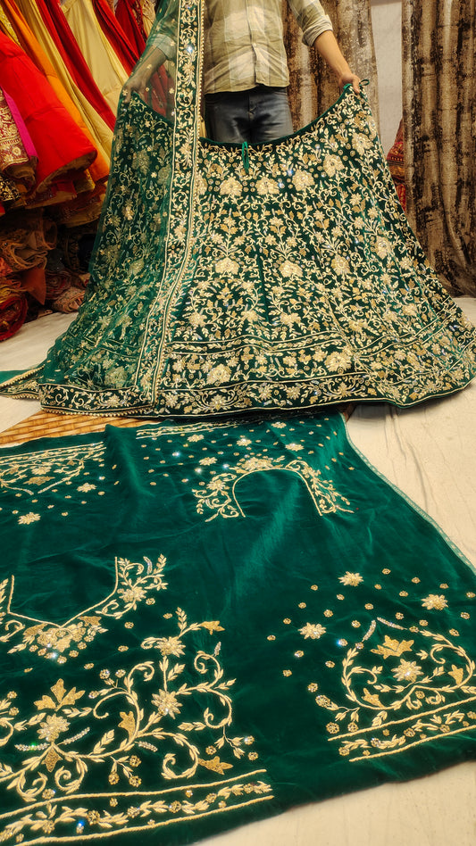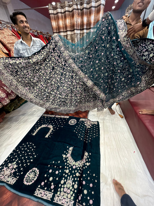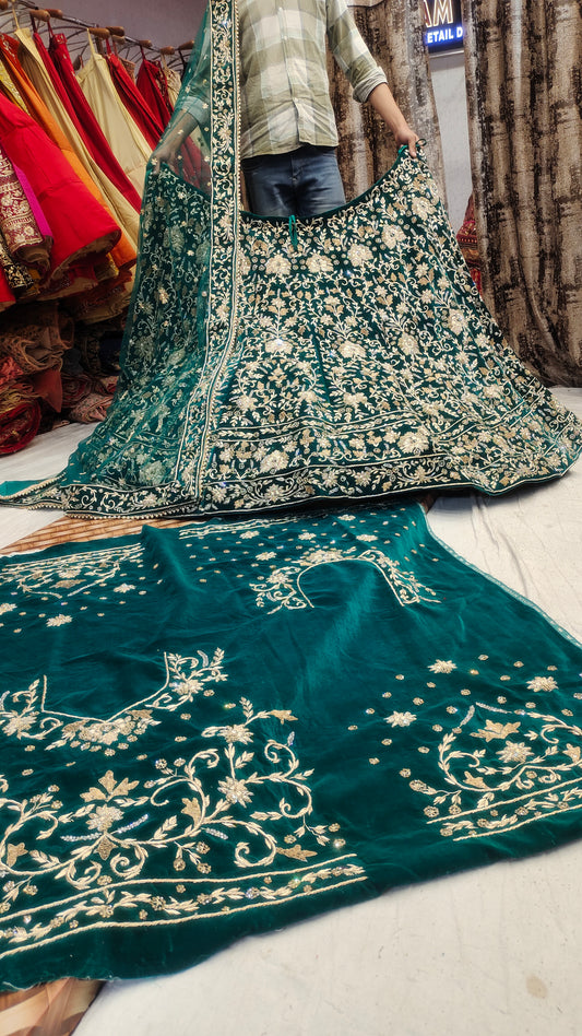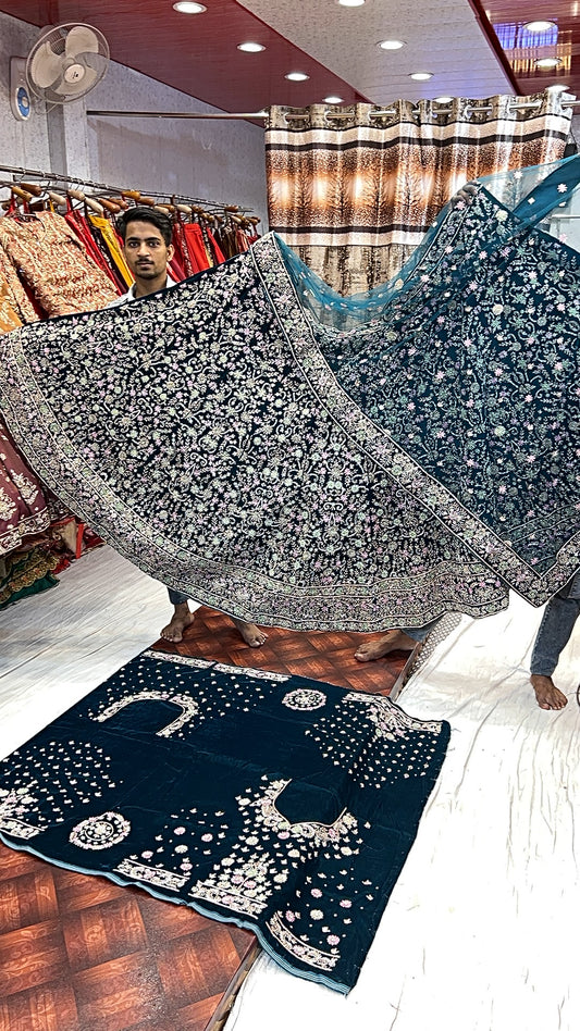 Good looking peacock Velvet Double Duptta Bridal Lehenga