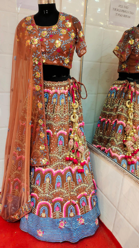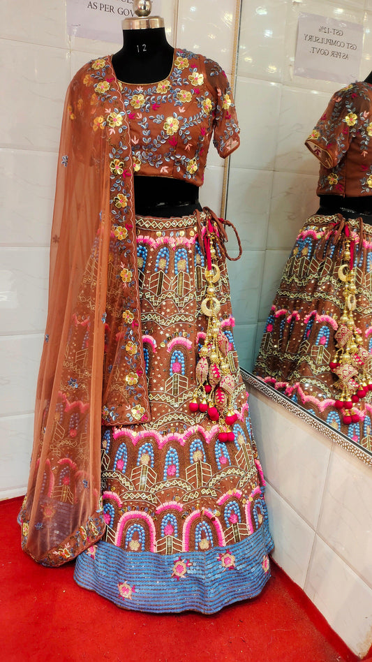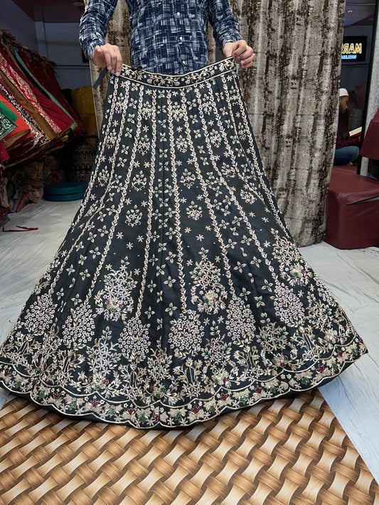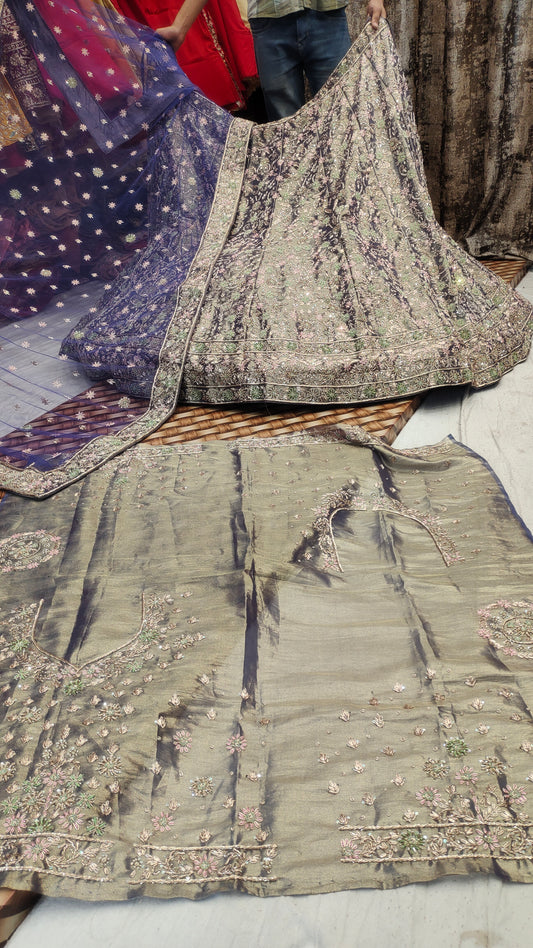 EXQUISITE HANDWORK stunning lehnga choli crafted on net Dark blue Ready to Wear crop top Lehenga