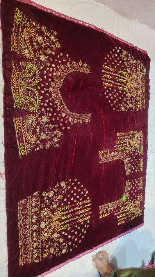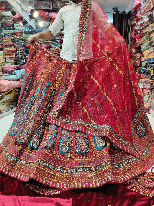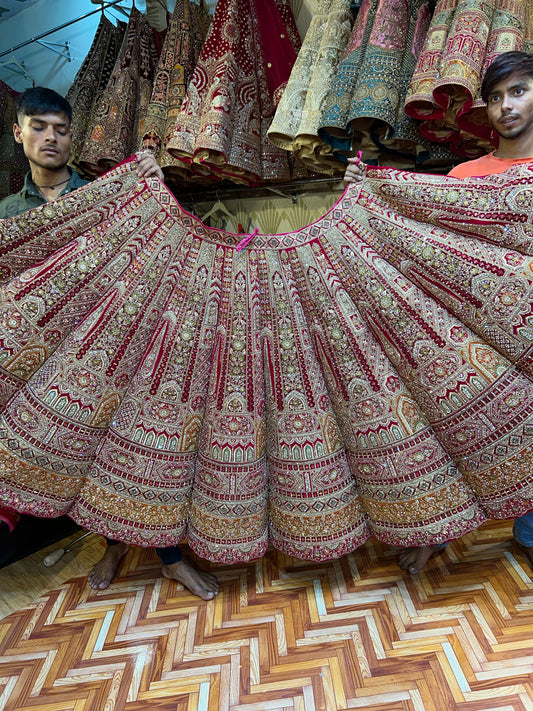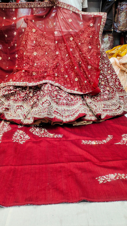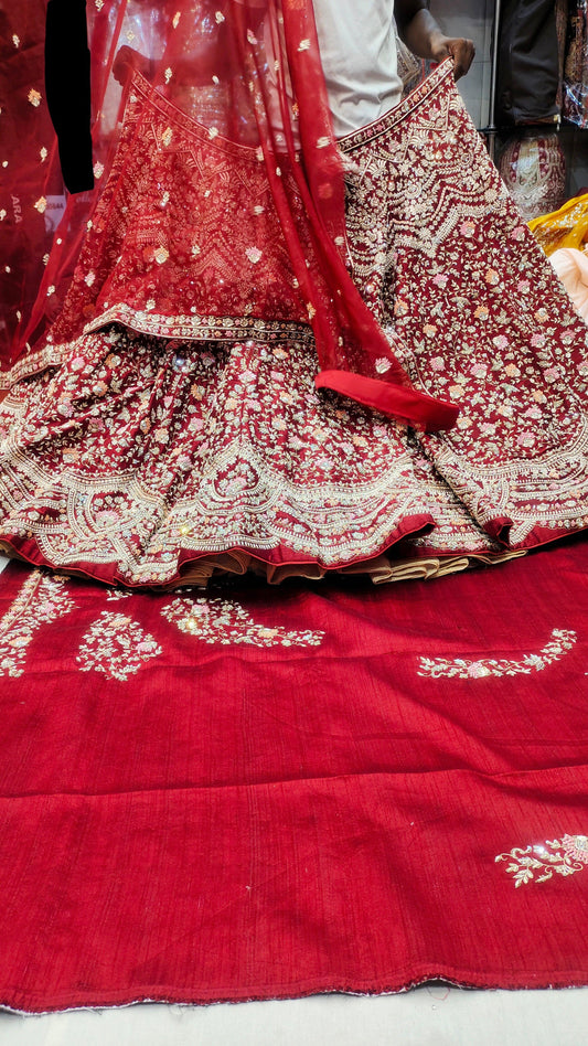 Gorgeous maroon pure handwork zardozi dabka lehenga