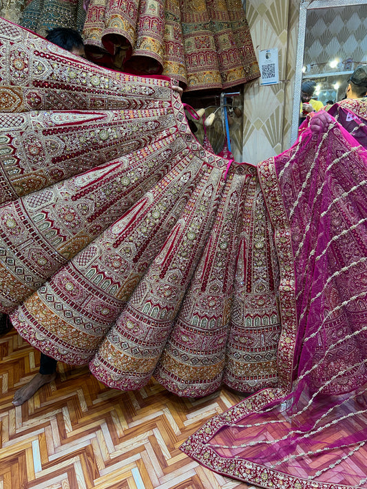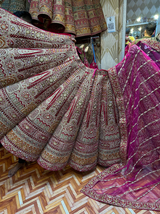 Fantastic rani pink Doli barat handwork bridal Lehenga