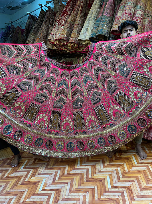 Astonishing peacock Silk Rani pink Double Duptta Bridal Lehenga