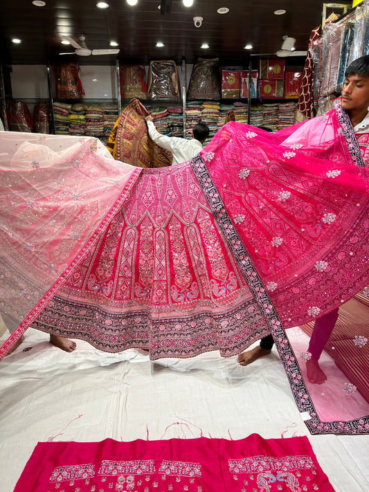 Fantastic Rani pink Silk Double Duptta Bridal lehenga