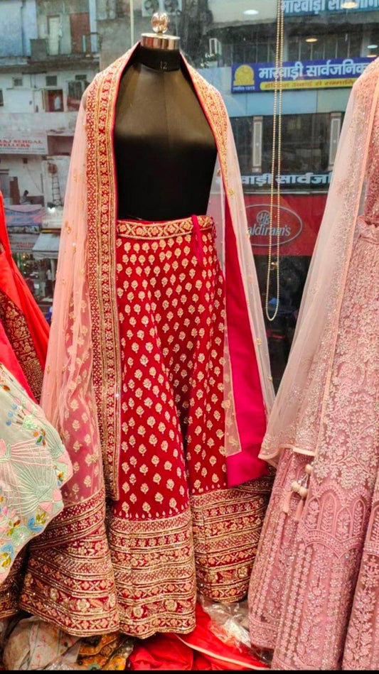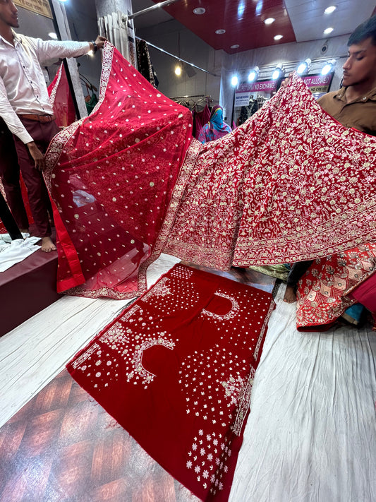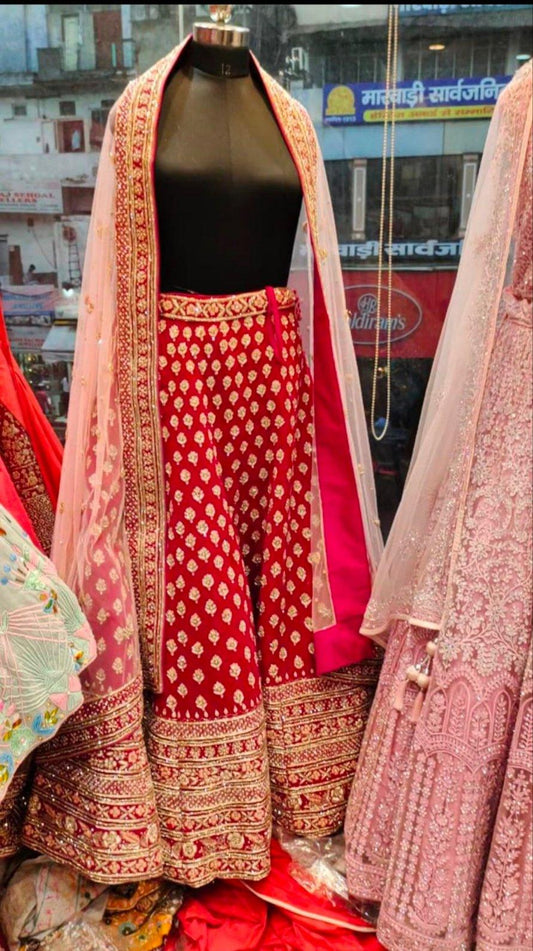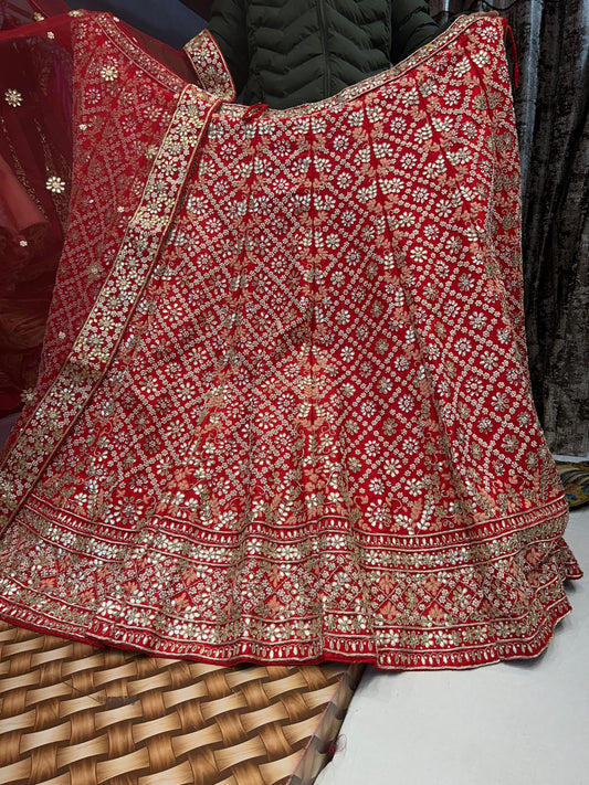 Fabulous Red Silk Double Duptta Bridal lehenga