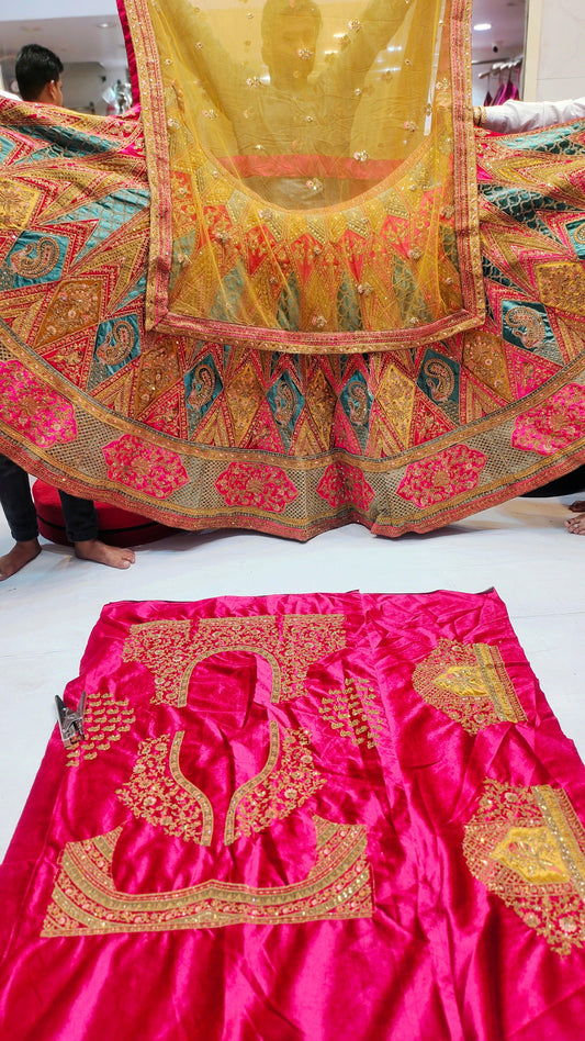Designer Rani pink peacock Velvet Double Duptta Bridal Lehenga