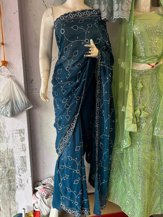 • Premium fabrics: Soft silk blends, breathable cotton, chiffon, georgette, and more