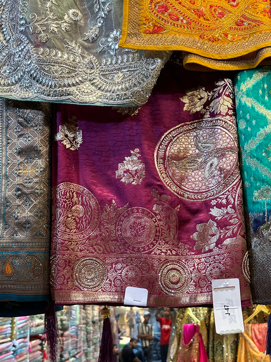 We offer a wide range of sarees, including bridal sarees, silk sarees, Banarasi sarees, georgette sarees, chiffon sarees, and party-wear sarees in stunning designs and colors.