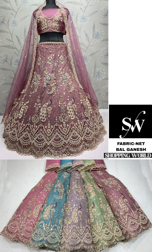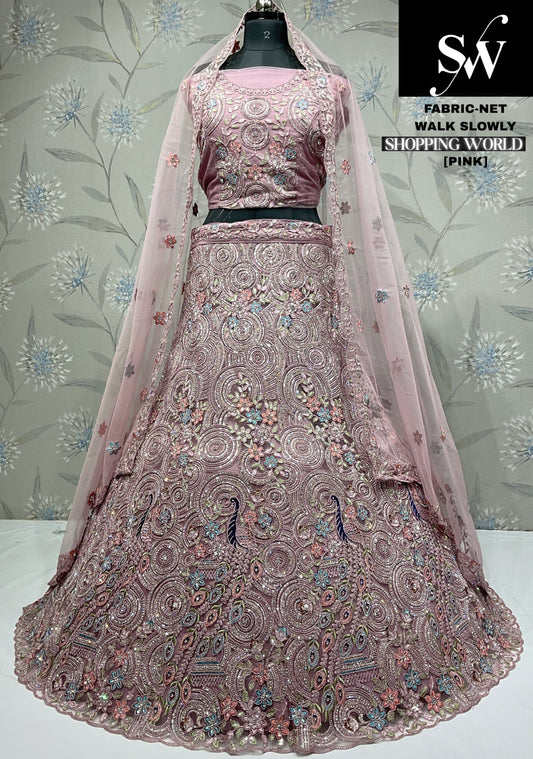 Khoobsurat Rani pink Silk Double Dupatta peacock Bridal Lehenga