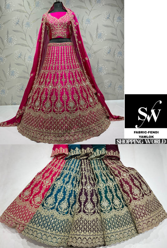 Fabulous Rani pink Red Chiku golden Velvet Bridal Lehenga