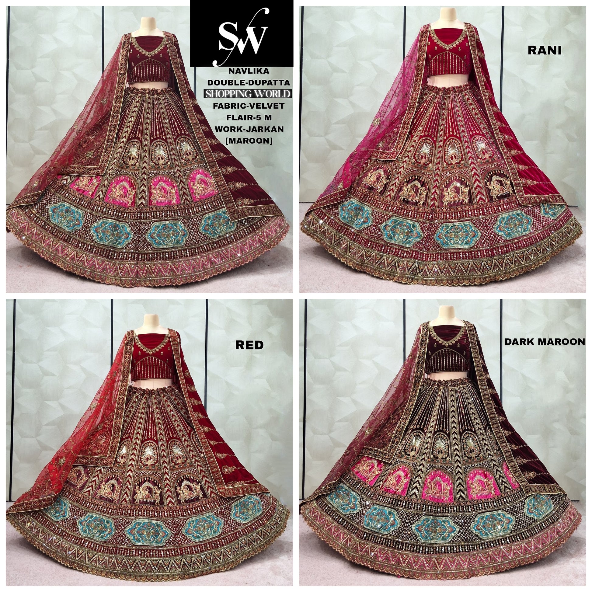 Awesome Red Rani pink Maroon Dark Maroon Double Dupatta Silk Bridal Lehenga
