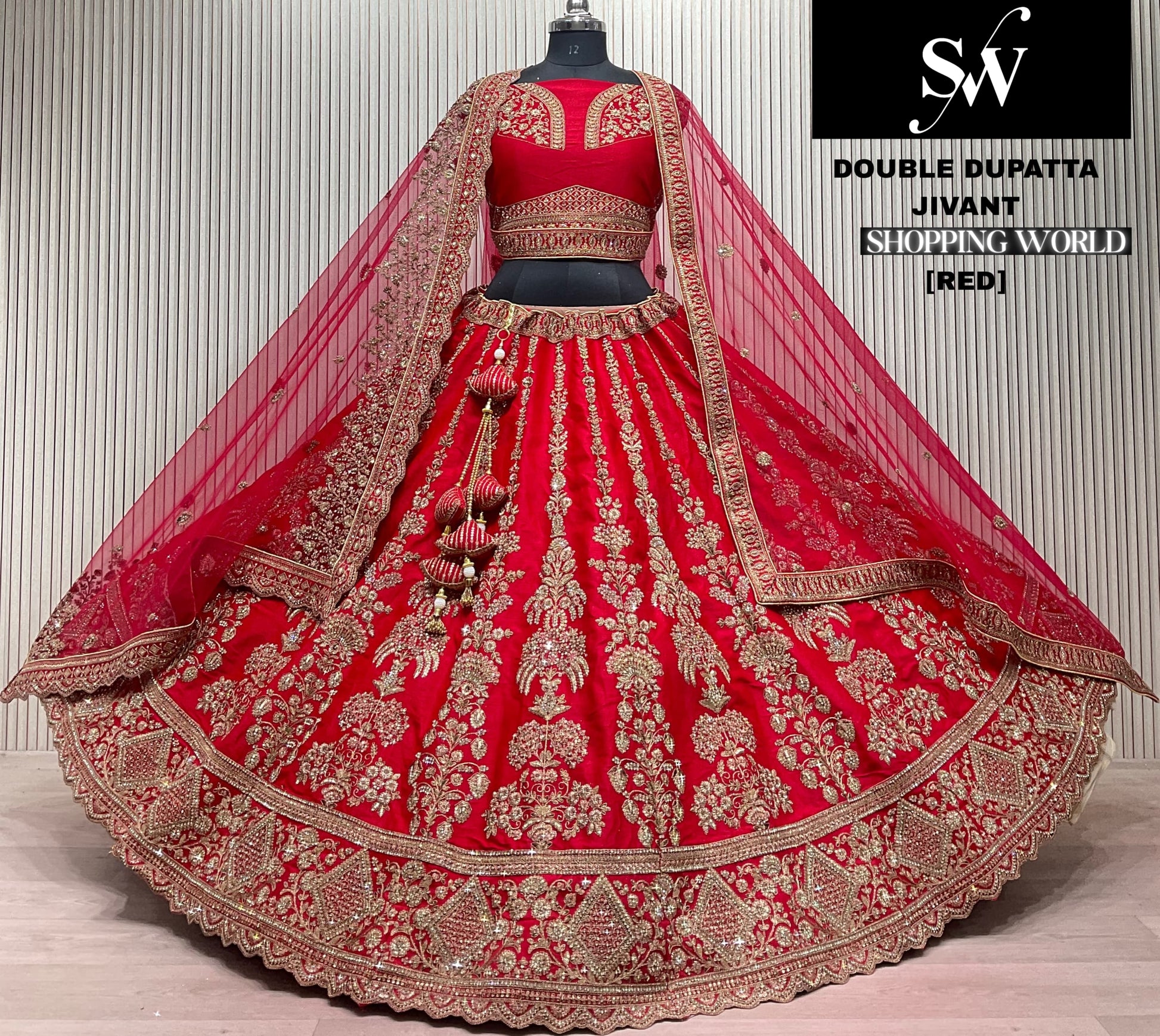 Royal Red Bridal Lehenga Double tail Dupatta with Dupatta happy customer