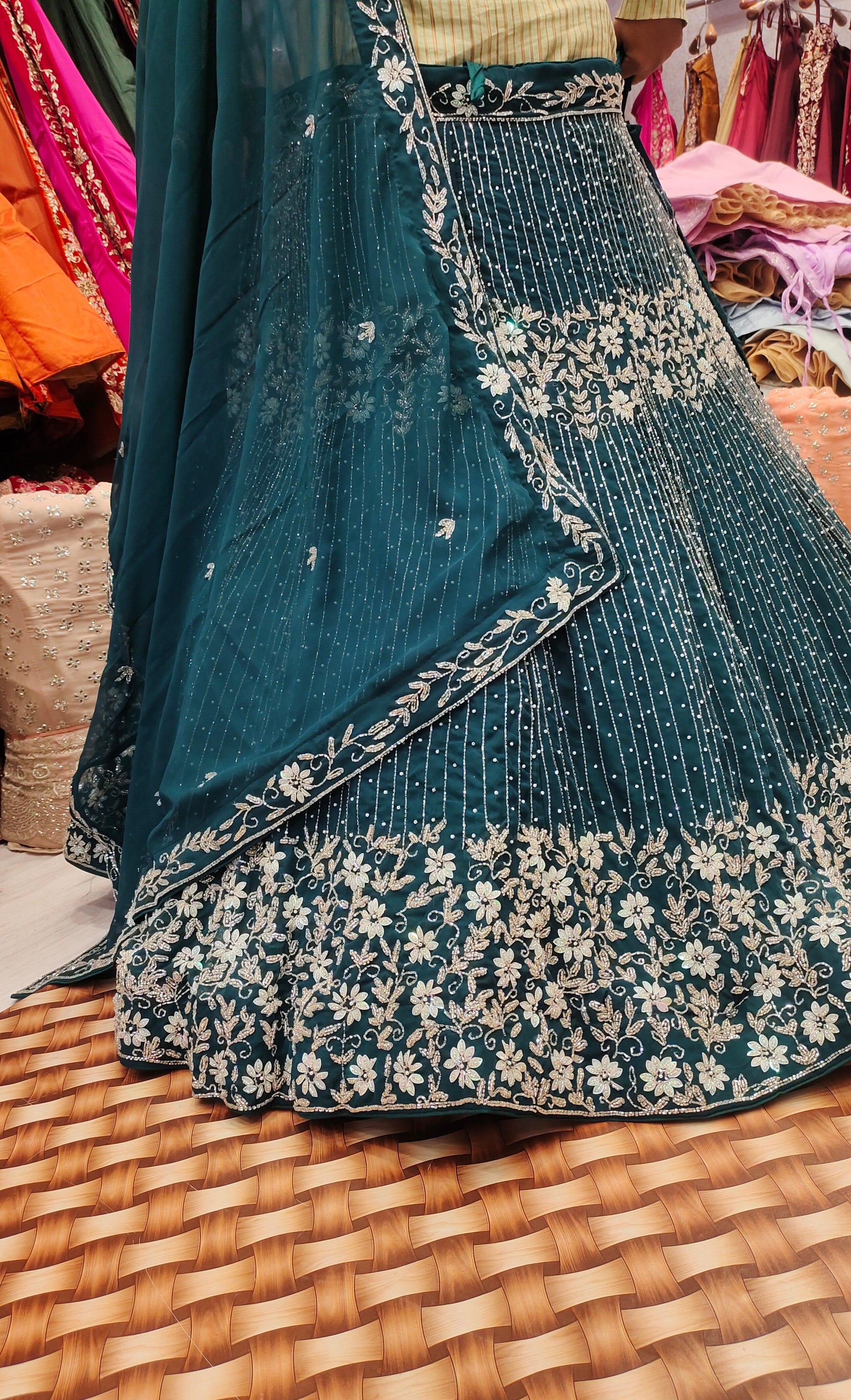 - ₹25,000 – ₹50,000: Premium partywear lehengas with intricate craftsmanship