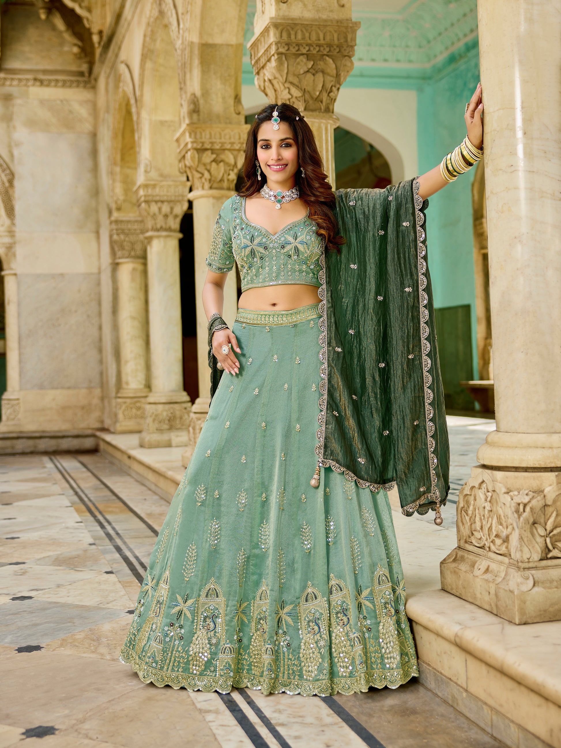 Attractive pista green peacock crop top Lehenga Happy Customer