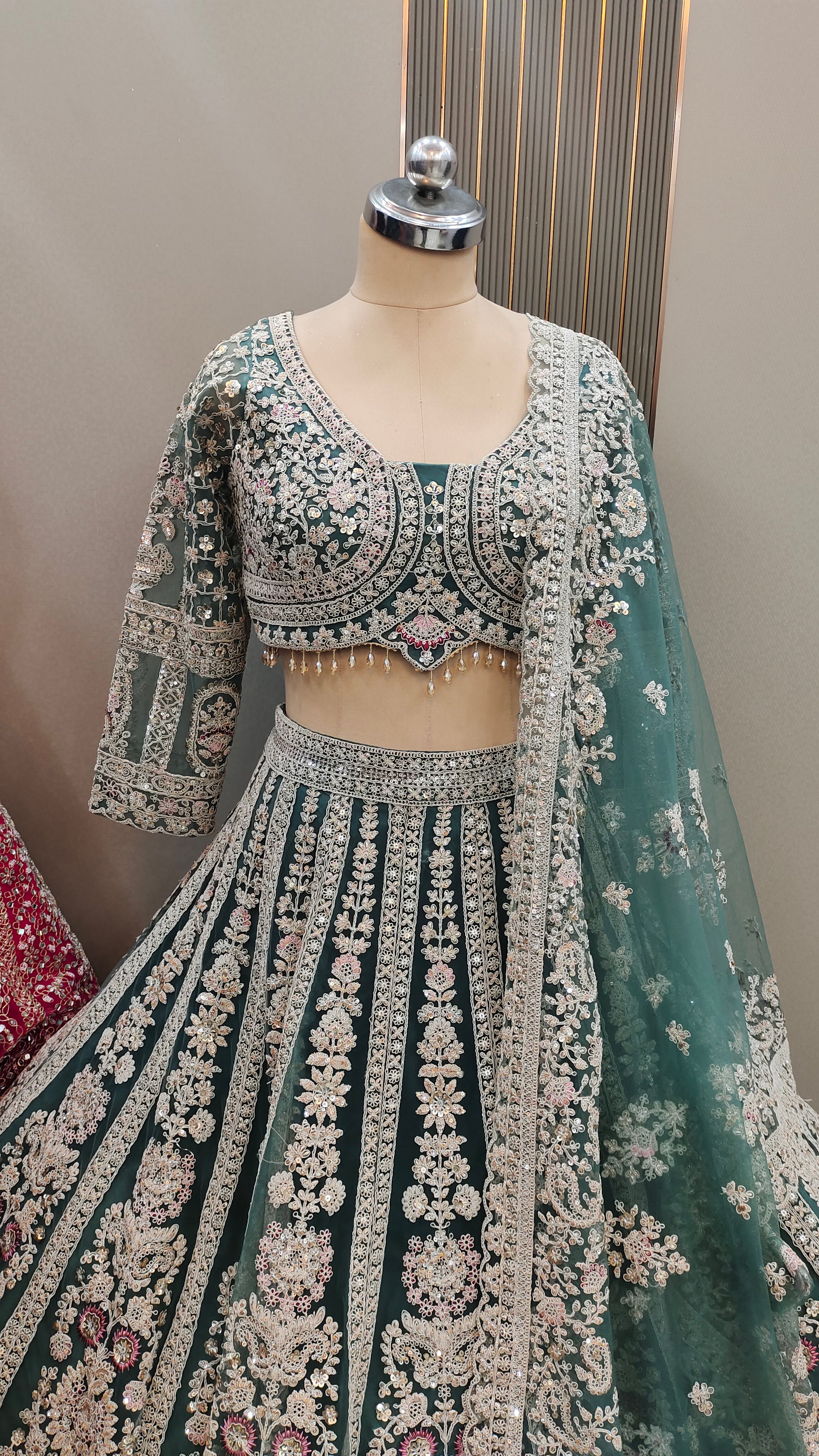 Attractive pista green peacock crop top Lehenga Happy Customer