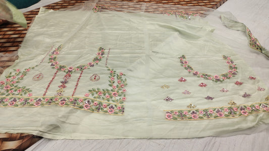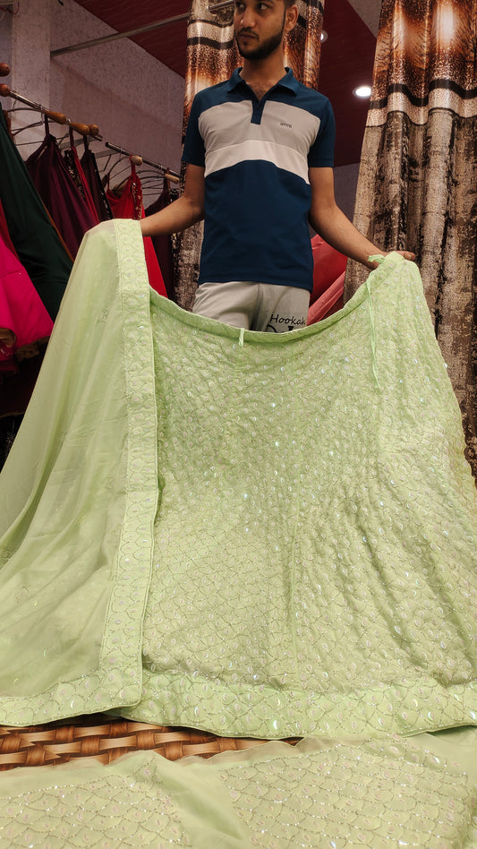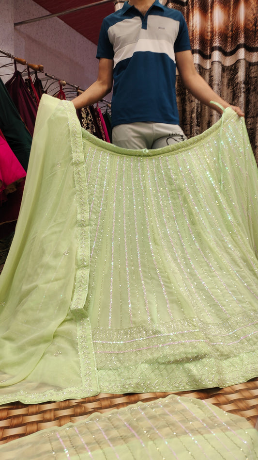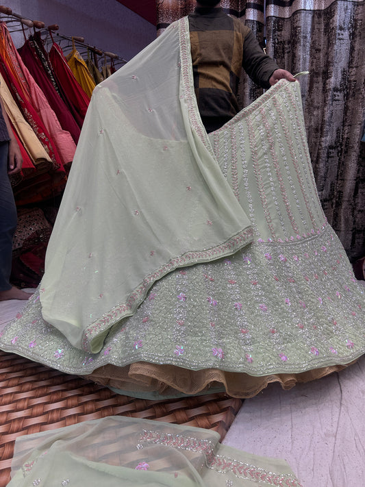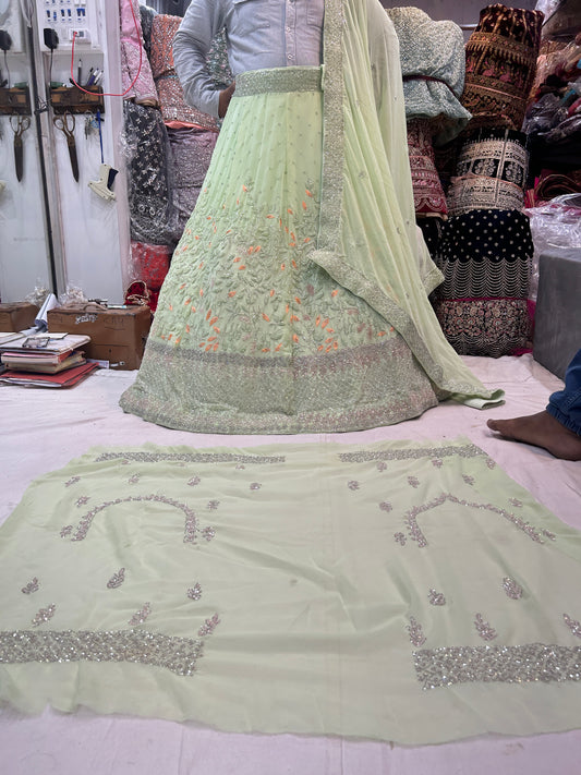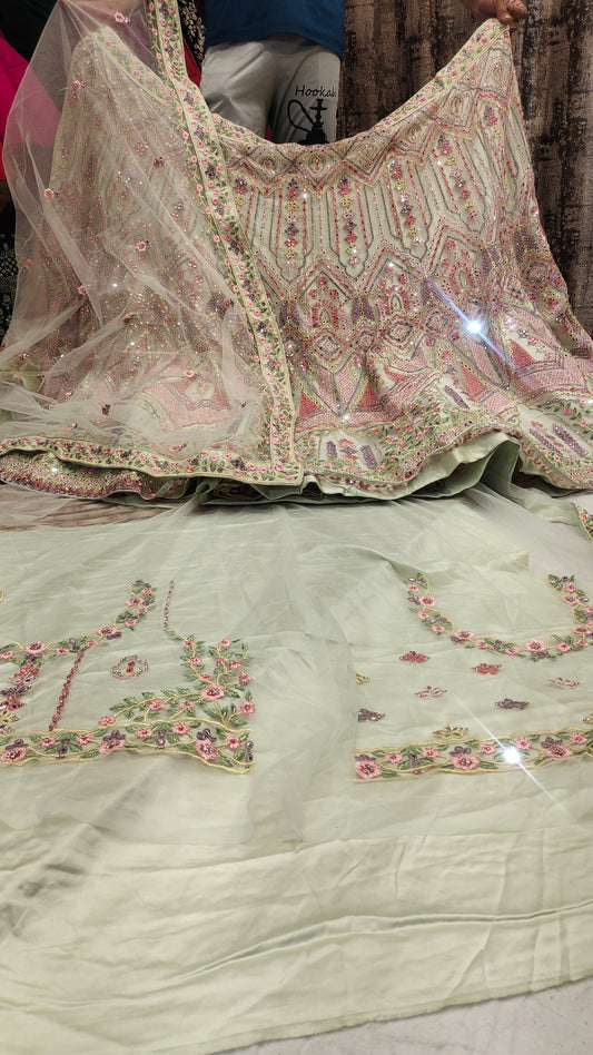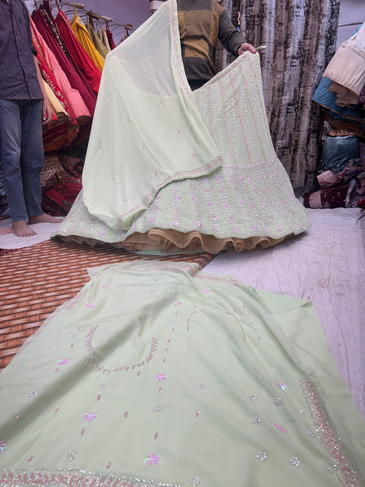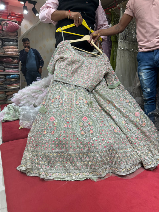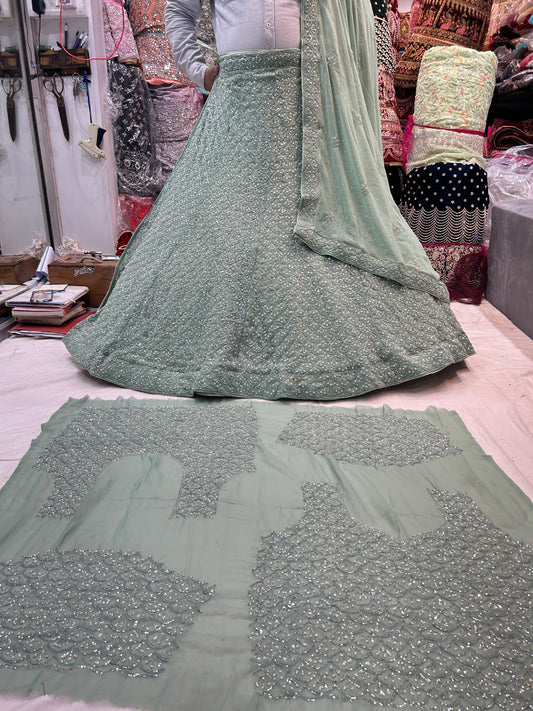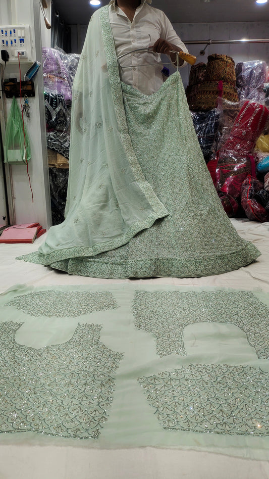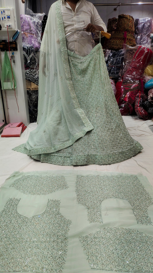 12 kali heavy work Charming Pista light green Sky blue crop top Lehenga