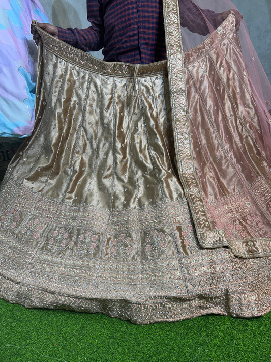 16 kali Fantastic beige pink golden Ready to wear Crop Top Lehenga