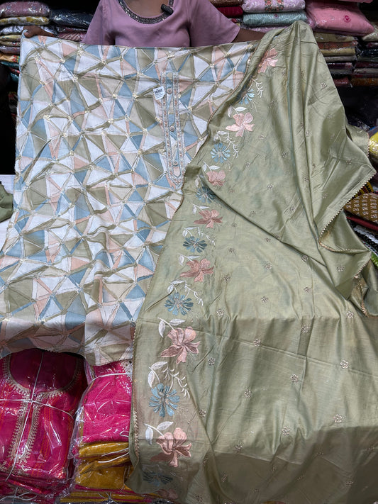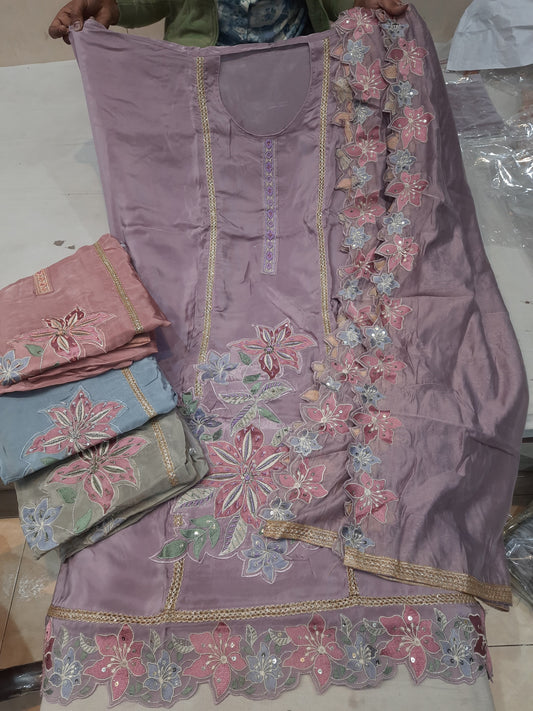 Amazing black grey organza women's unstitched Salwar suits dress material (free size)