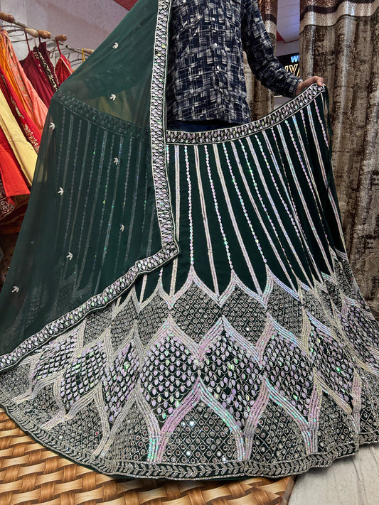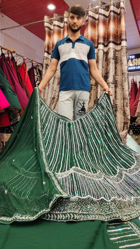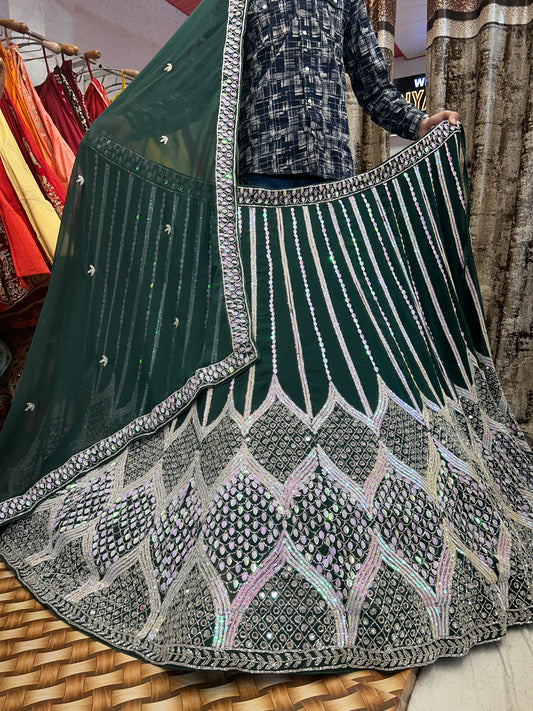 16 kali Heavy work Embellished green peacock crop top Lehenga